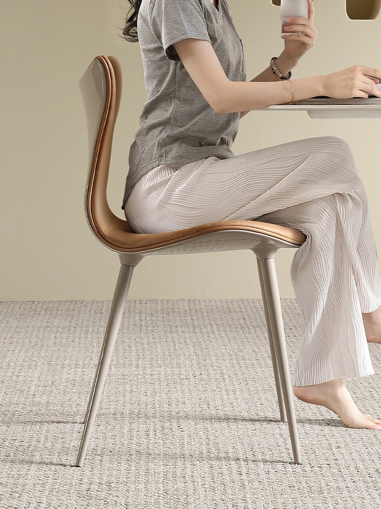 Italian Minimalist Dining Chair - Modern Luxury High-End Grade S Genuine Leather Seat for Stylish Restaurants