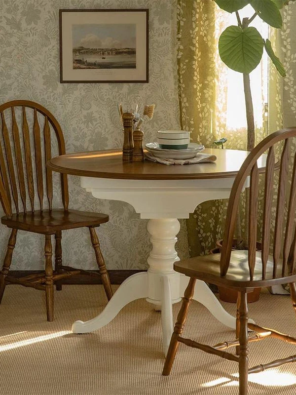 French Vintage Solid Wood Dining Chair - Wabi-Sabi Style with Nordic Elegance for Home Use - Designer Backrest Chair Perfect for Chic Dining Spaces