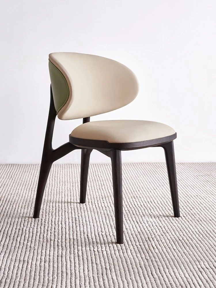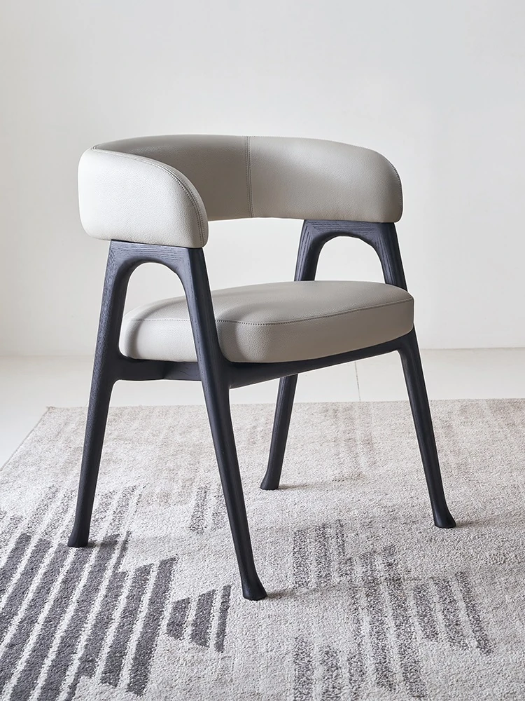 MoBan Nordic Dining Chair - Italian Minimalist Luxury Modern Upholstered Top-Grain Leather Armchair, High-End Hotel Chair with Sophisticated Style