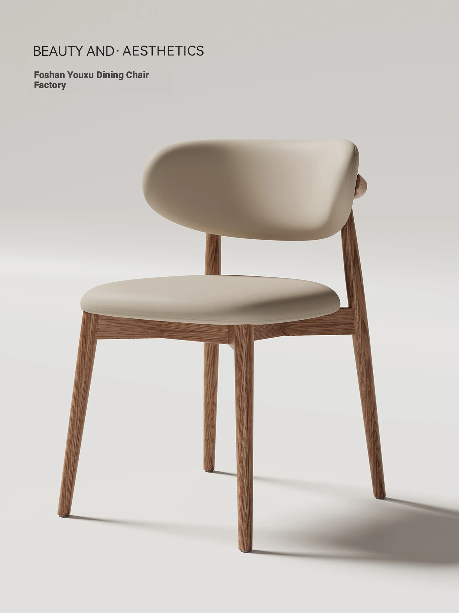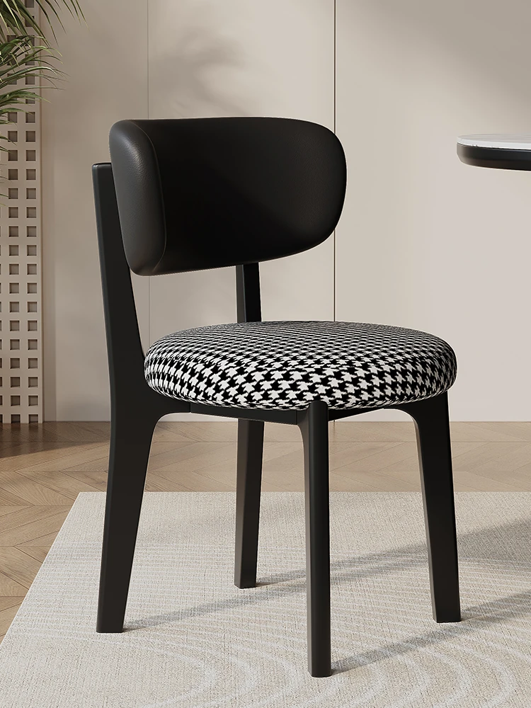 Nordic Solid Wood Dining Chair with Soft Backrest - Elegant French Style, Modern Minimalist Design for Home Use, Perfect for Small Spaces