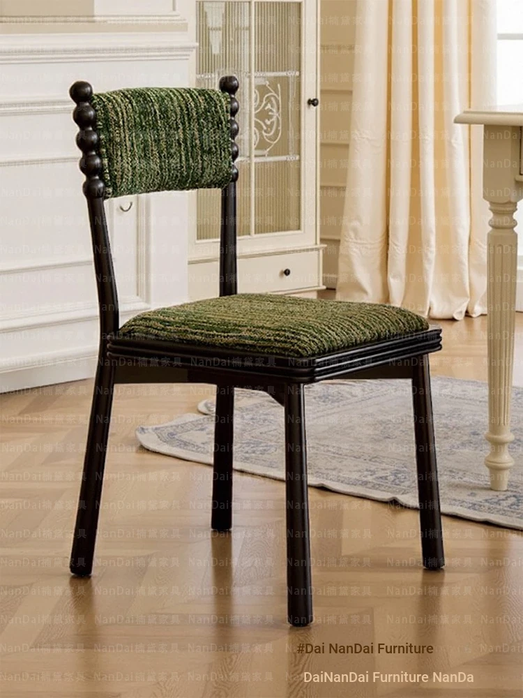 French Vintage Solid Wood Dining Chair - Designer Backrest Makeup Chair, American Retro Style for Home Use, Ideal for Bedroom and Study