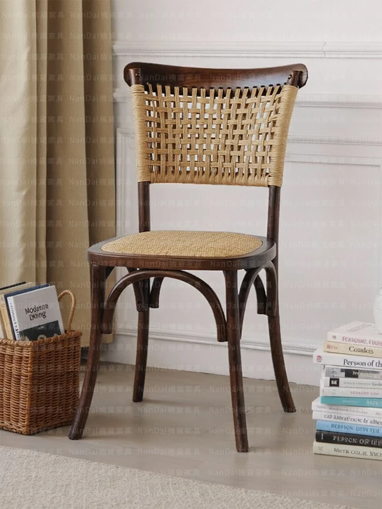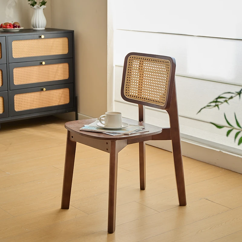 Nordic Style Rattan Dining Chair - Vintage Solid Wood Backrest, High-Quality Woven Leisure Chair for a Cozy Home Atmosphere, Perfect for Retro and Modern Interiors