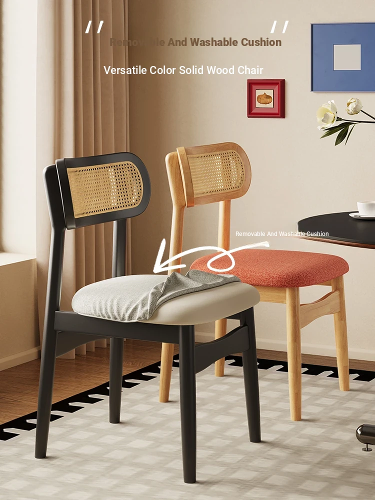 Vintage Style Removable Wooden Dining Chair - French High-End Retro Lightweight Rattan Backrest Chair for Home Use, Perfect for Casual Dining Spaces
