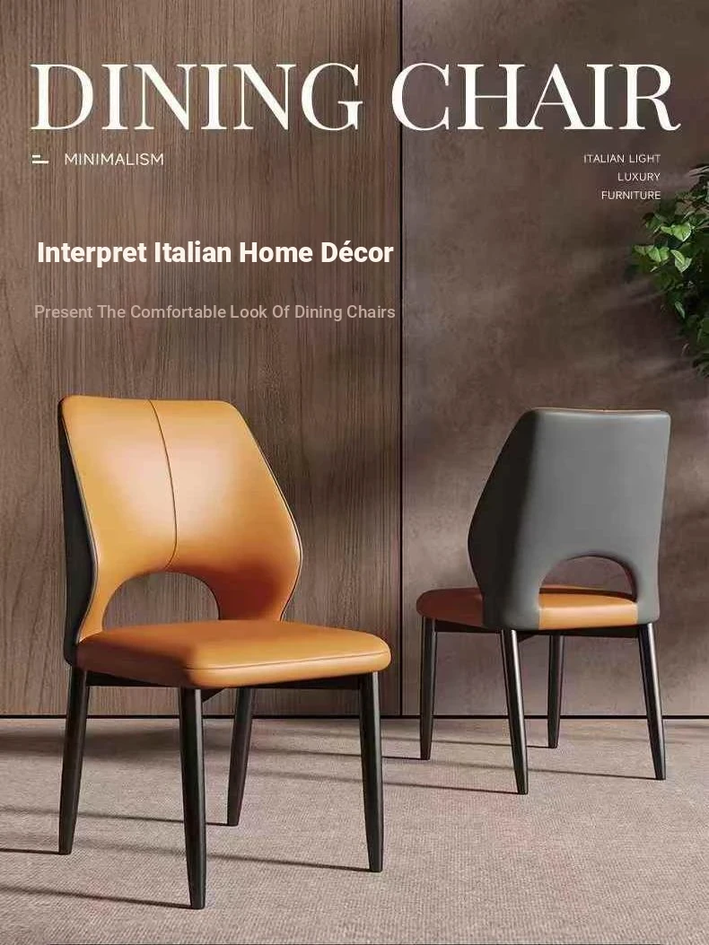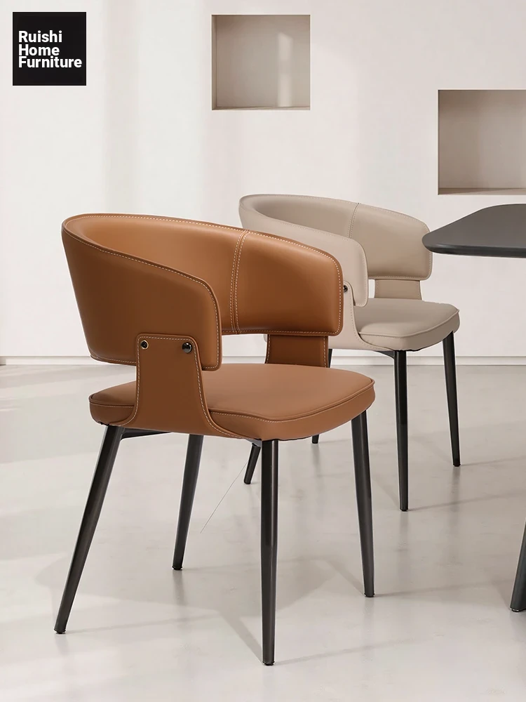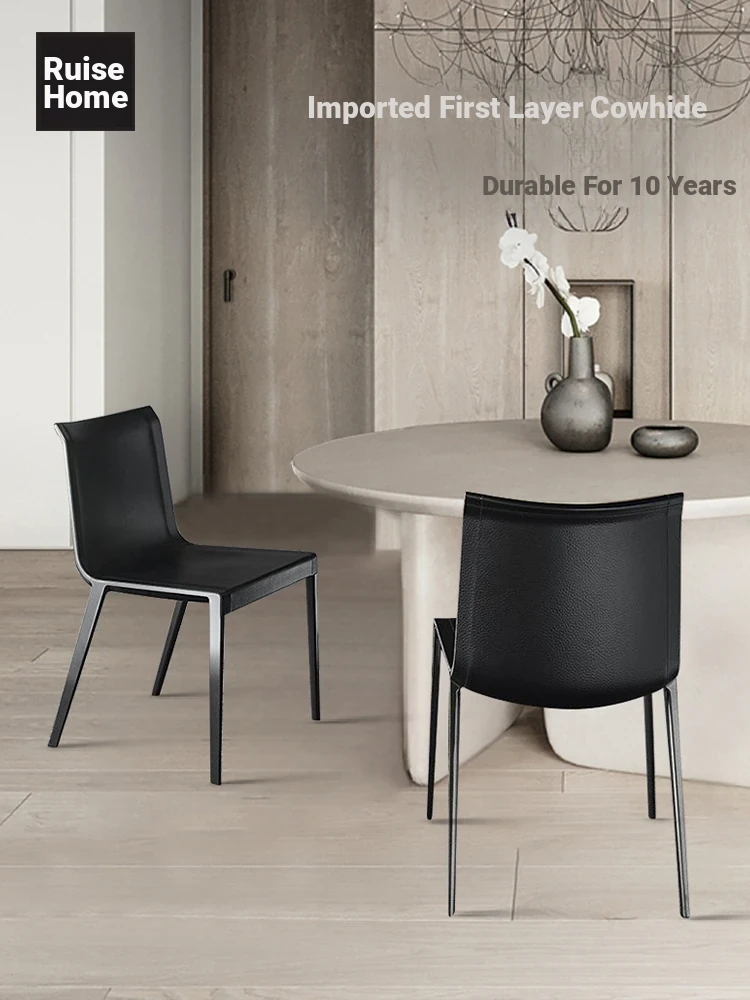 Premium Genuine Leather Dining Chair - Luxurious and Comfortable Home Seat for Long Hours - Italian Minimalist Style Dining Stool for Your Elegant Dining Room