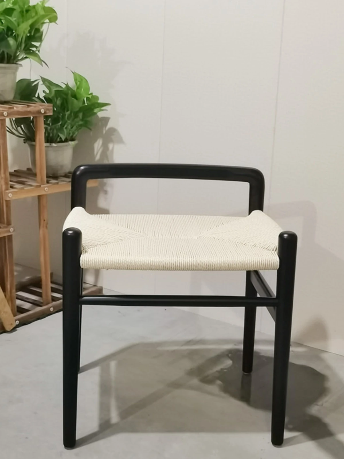 Nordic Style Rattan Stool - Chic Low Bench, Versatile Tea Seat, Asian-Inspired Shoe Bench, Elegant Vanity Stool, Japanese Hostel Dining Chair, Perfect Entryway Bench