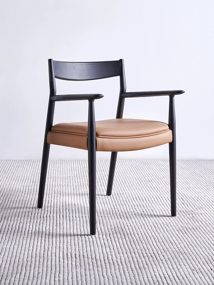 Moban Retro Dining Chair - Italian Minimalist Solid Wood Armchair with Genuine Leather Upholstery, Perfect for High-End Hotels and Villas
