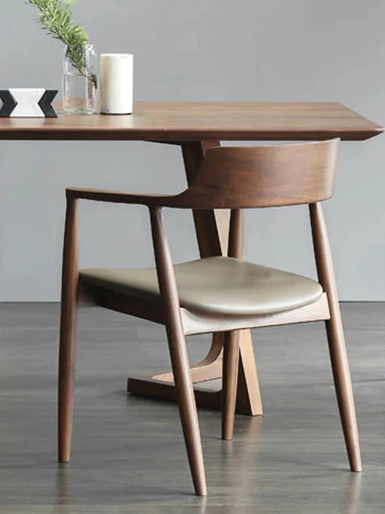 Moban Vintage Solid Wood Dining Chair - Minimalist Nordic Style Armchair with Soft Leather Upholstery for High-End Home Dining Experience