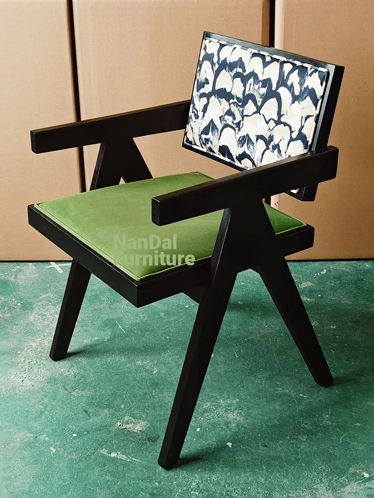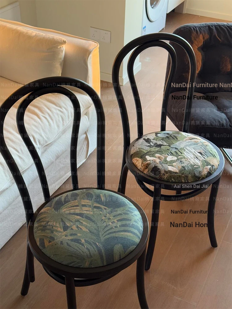 Vintage-Inspired Art Backrest Armchair - Soft Upholstered Retro Solid Wood Dining Chair, Designer Single Chair for Homestay and Restaurant Use