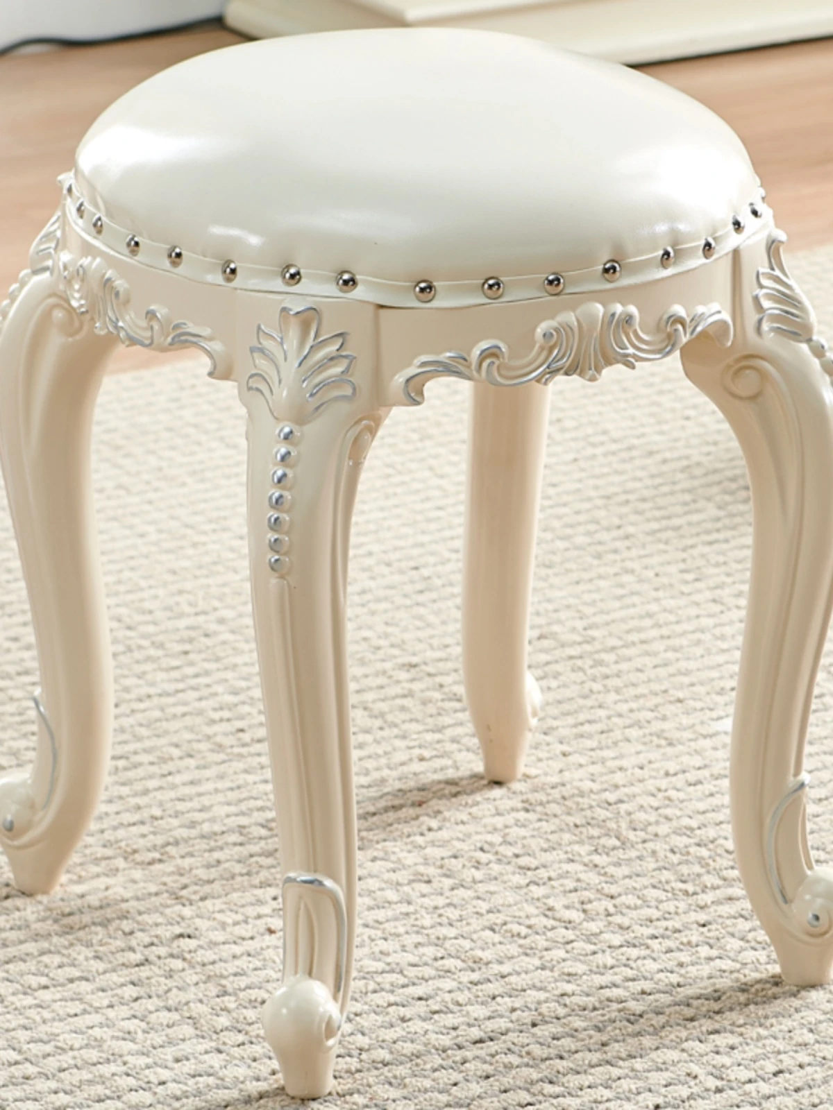 Elegant Solid Wood Vanity Stool - Round European Style Makeup Chair for Bedroom, Soft Padded Dressing Table Seat, Perfect for Princess Decor and Home Use