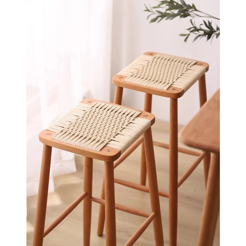 Nordic Solid Wood Woven Stool - Modern Minimalist Bar Stool, Dressing Stool, Shoe Changing Bench, High Bar Chair, Rattan Dining Chair for Stylish Home Decor