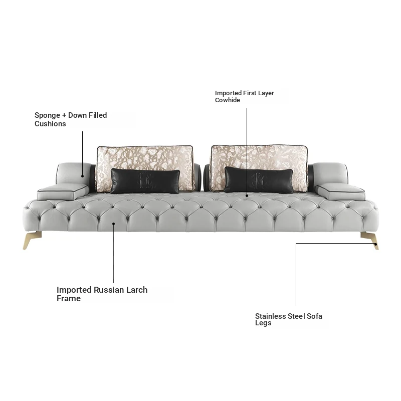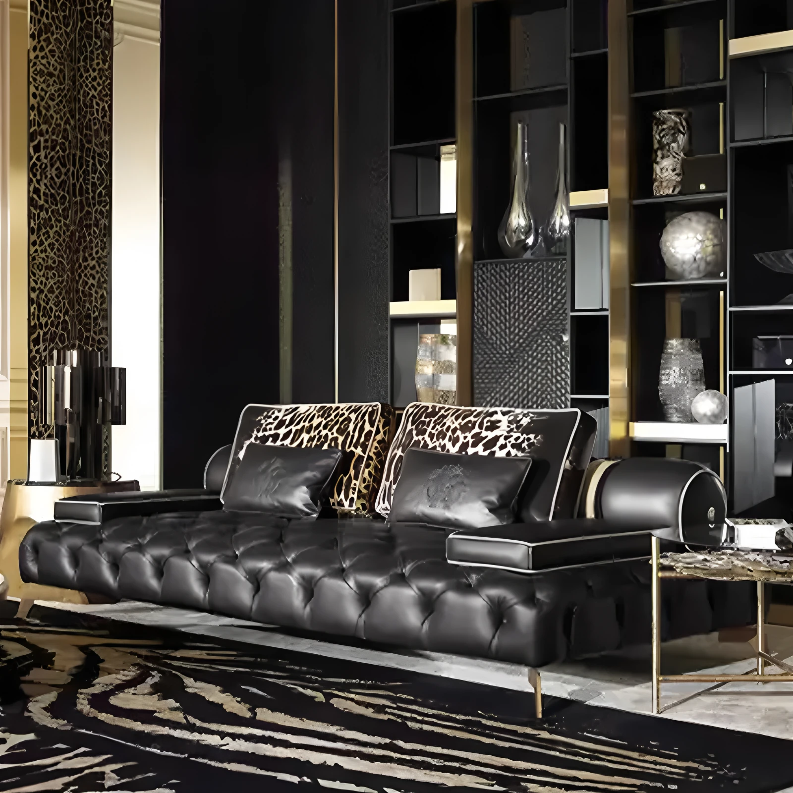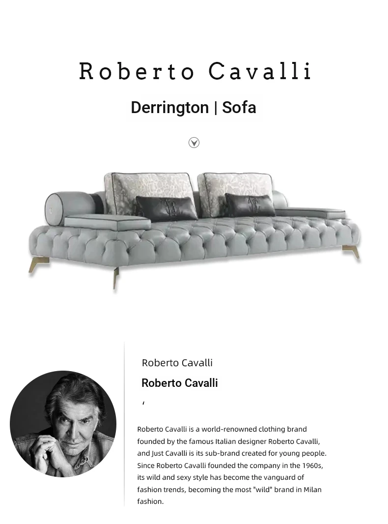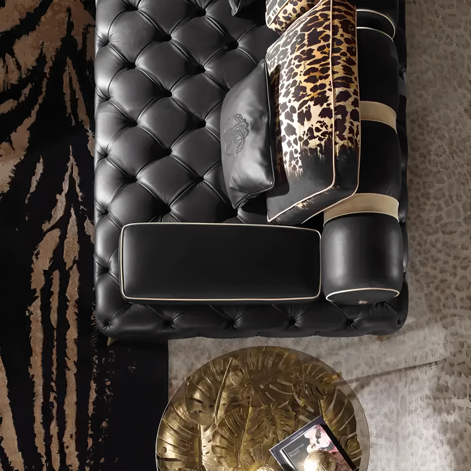 Aishangkaffee Italian Luxury Roberto Cavalli Leopard Print Designer French Genuine Leather Pull-Tab Sofa - Elevate Your Living Space with Elegant Comfort and Style!