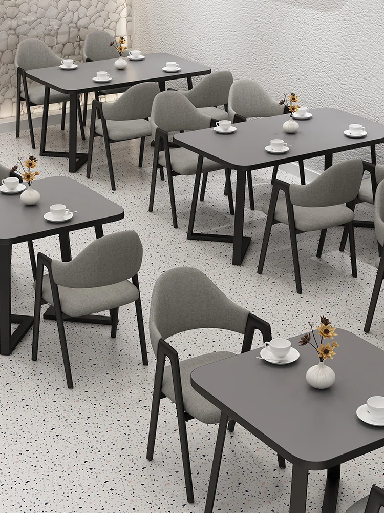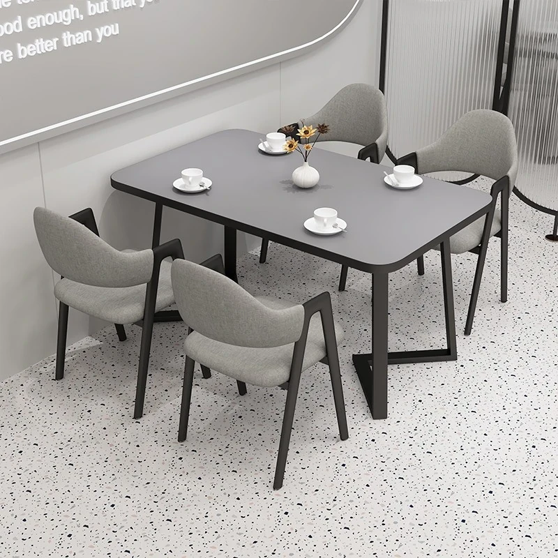Commercial Rectangular Dining Table and Chairs Set for Fast Food Restaurants, Home Use, Breakfast, Hot Pot Shops, Canteens, and Eateries - Durable and Stylish Design for Comfortable Dining Experience