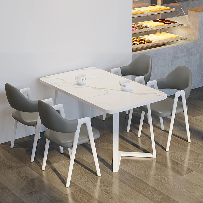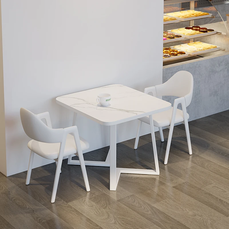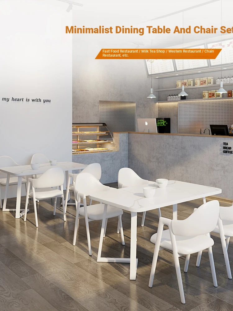 Creamy Style Restaurant Dining Table and Chairs Set - Ideal for Cafés, Dessert Shops, and Apartments - Elegant White Furniture for a Trendy Ambiance