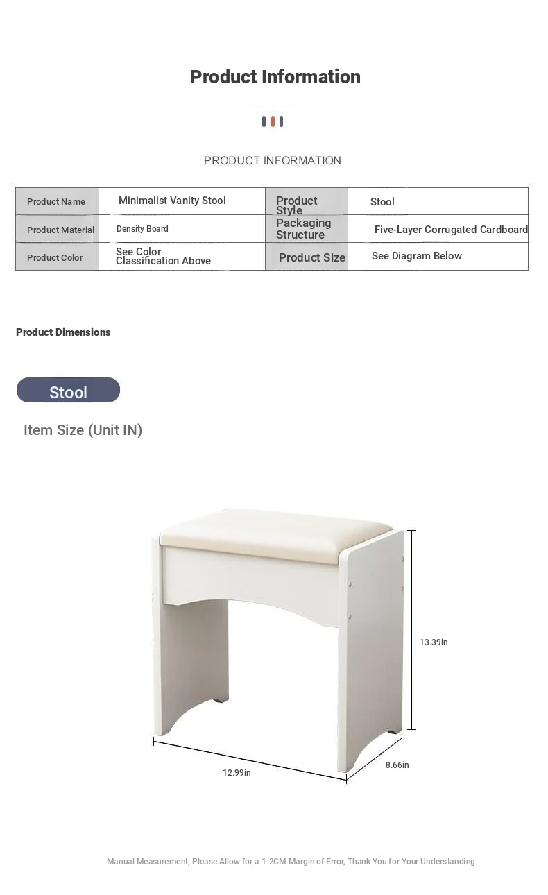 Elegant Makeup Vanity Stool for Women - Stylish Dressing Table Chair, Perfect for Bedrooms and Nail Art, Compact Home Use Low Bench