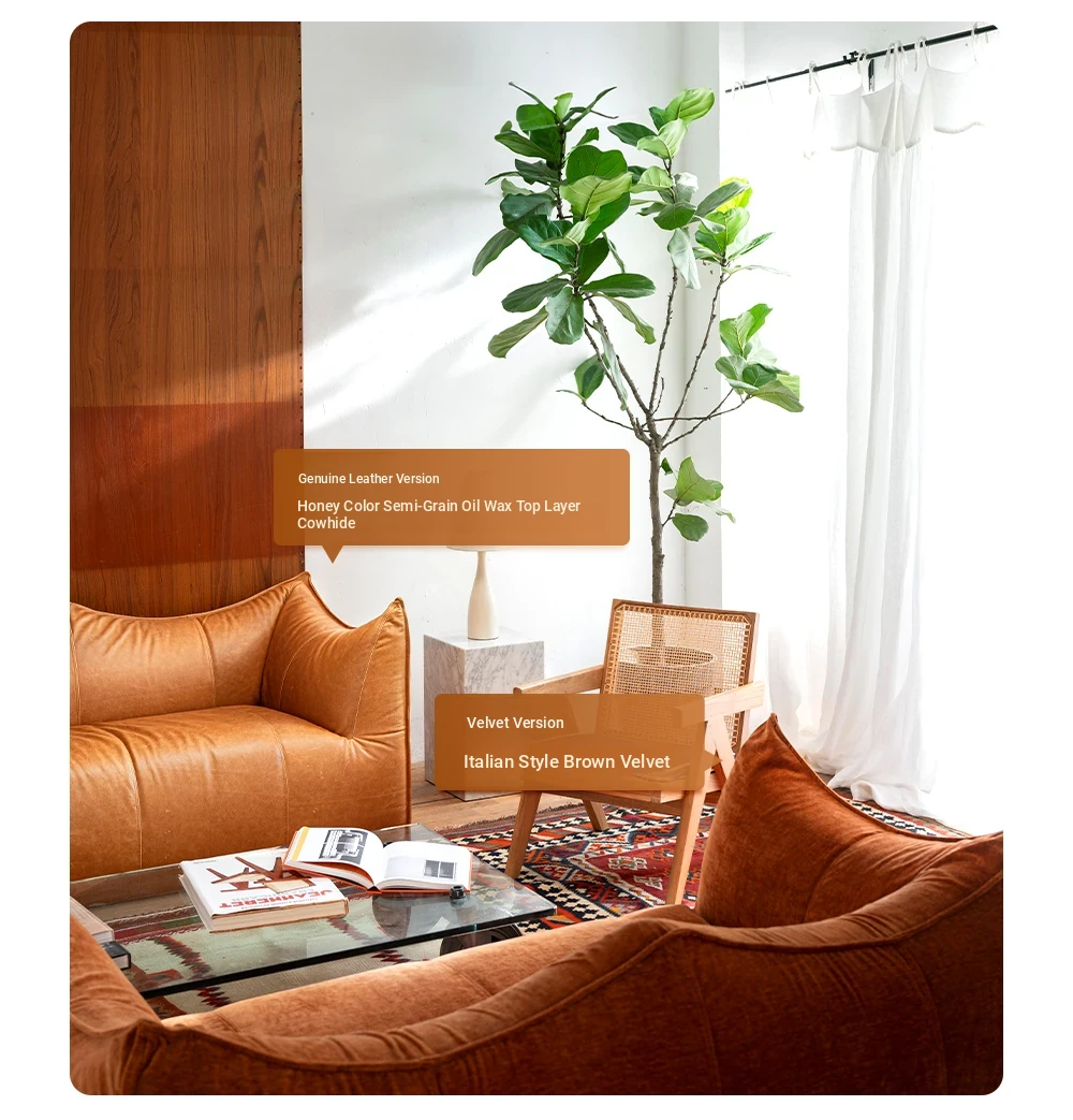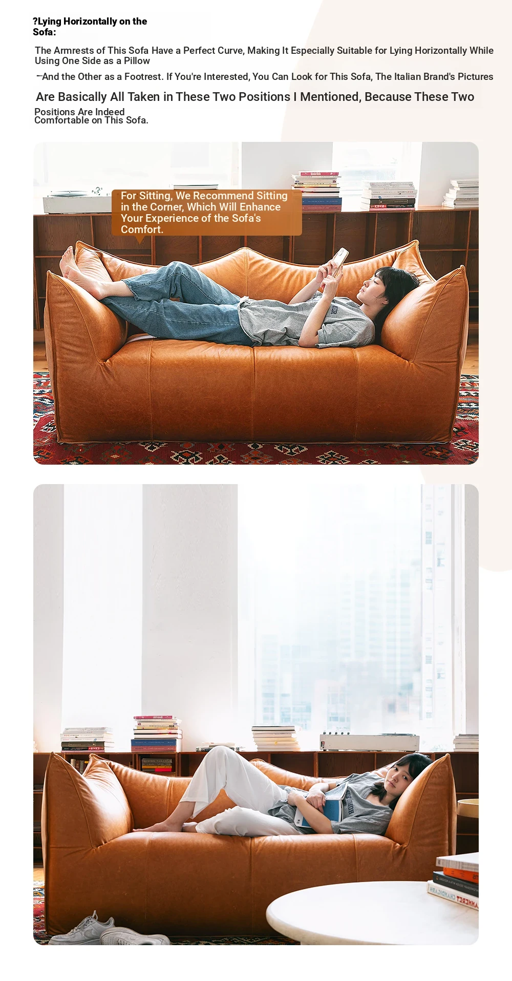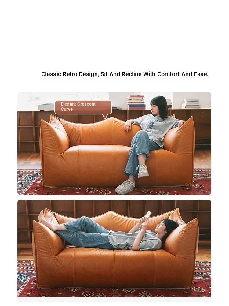 Garo Life S89 Vintage Genuine Leather Sofa - Luxurious Top-Grain Cowhide Double Seat Lazy Couch for Relaxation and Creative Spaces
