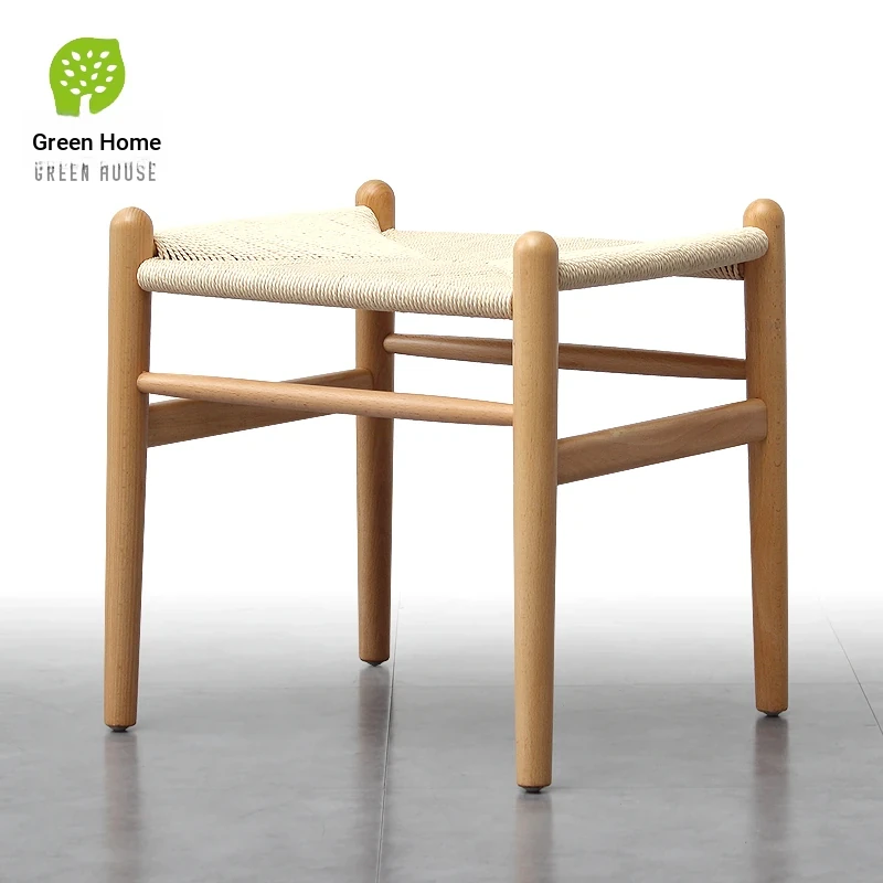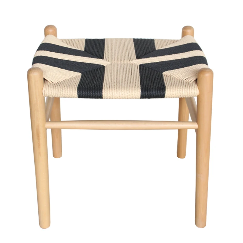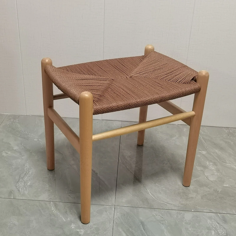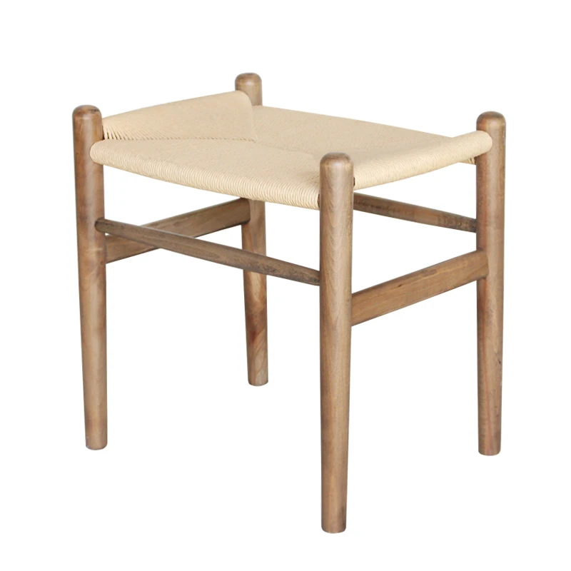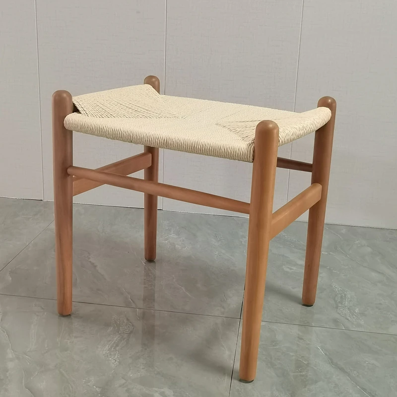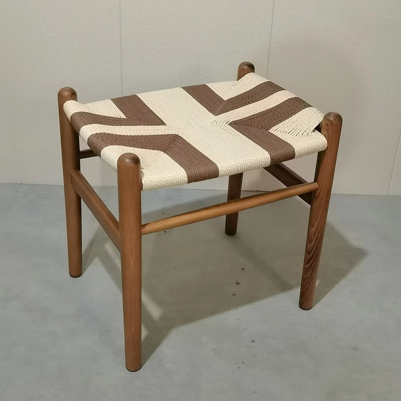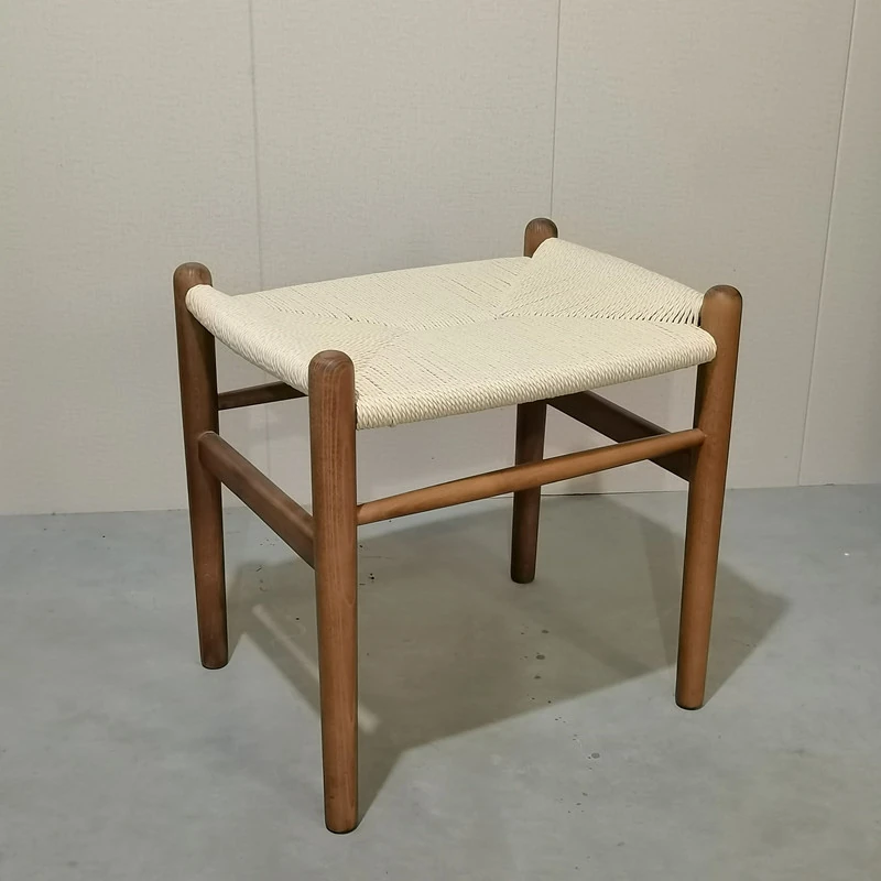 Nordic Minimalist Wooden Stool - Handwoven Rope Seat, Versatile Chinese-Style Bench, Japanese Long Bench, Shoe Changing Stool, Dining Chair, Makeup Stool for Guesthouses and Home Decor.