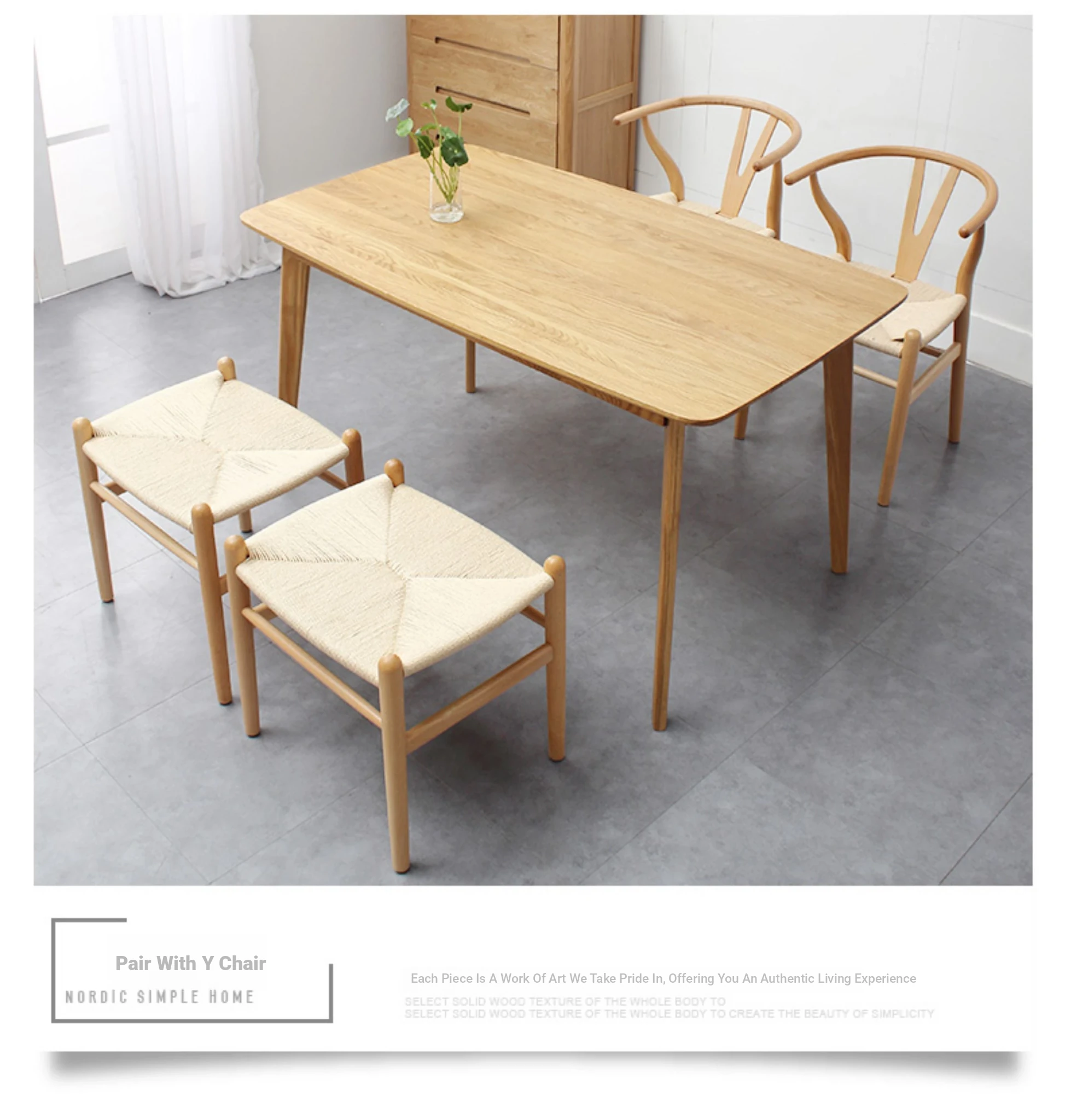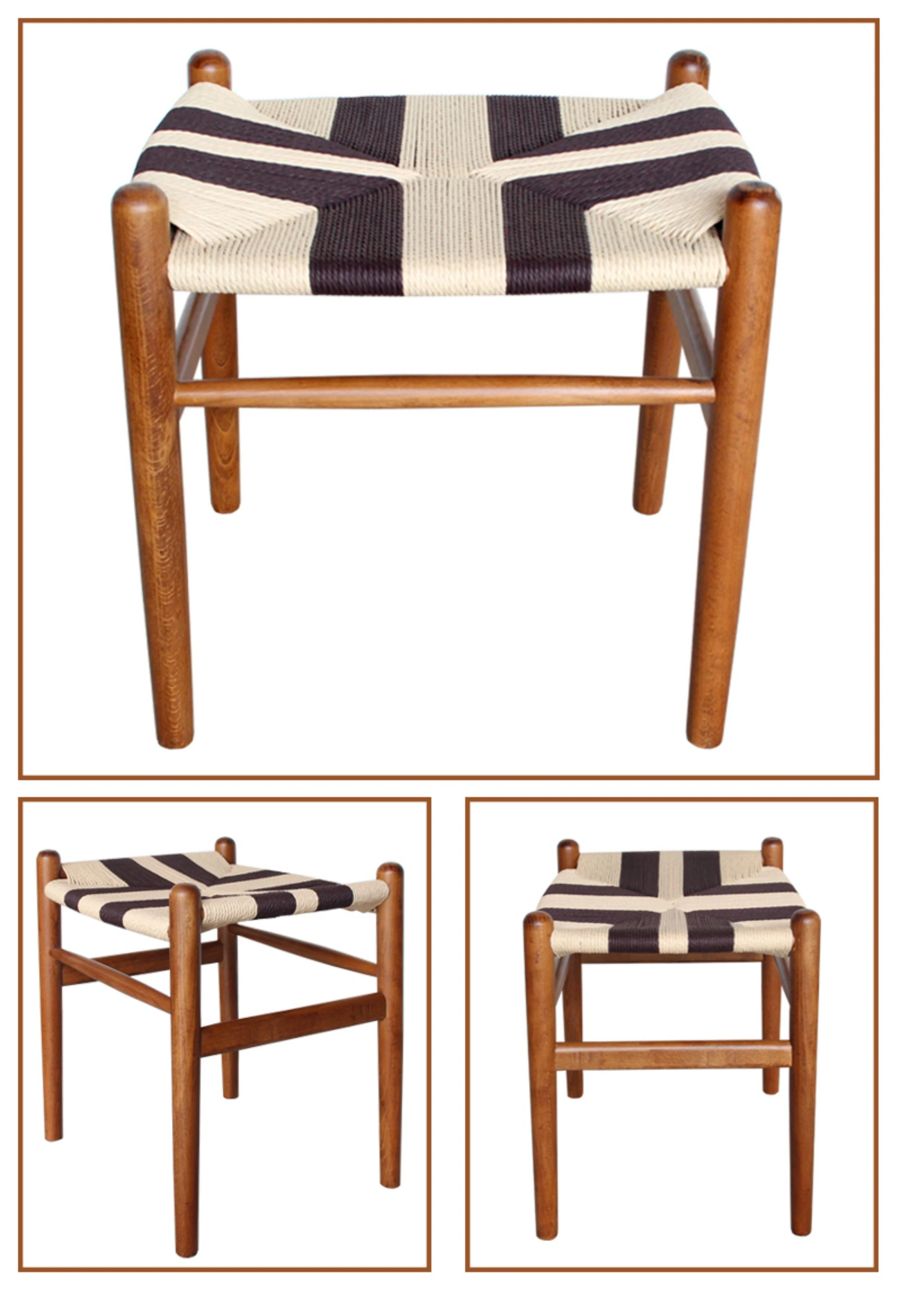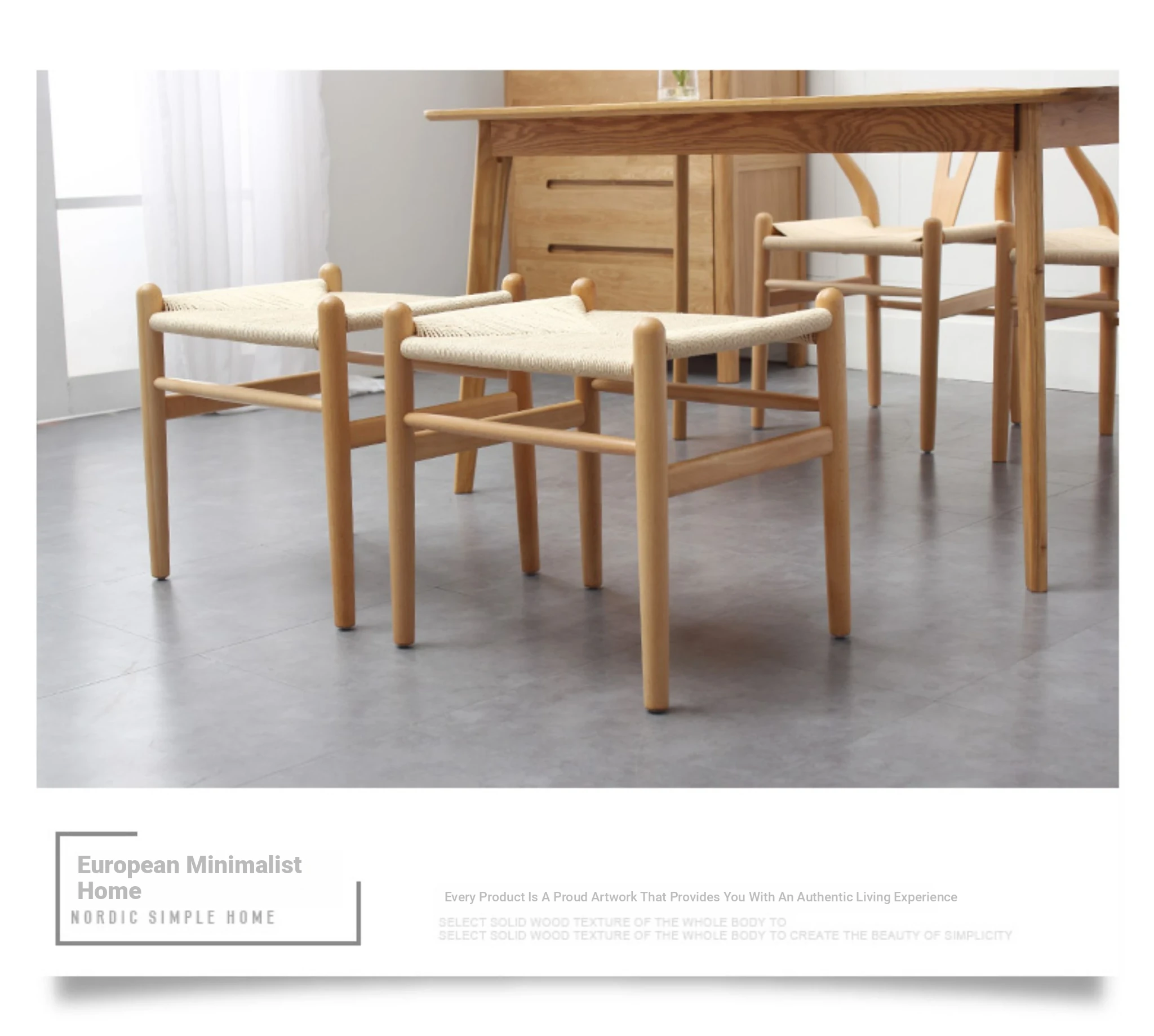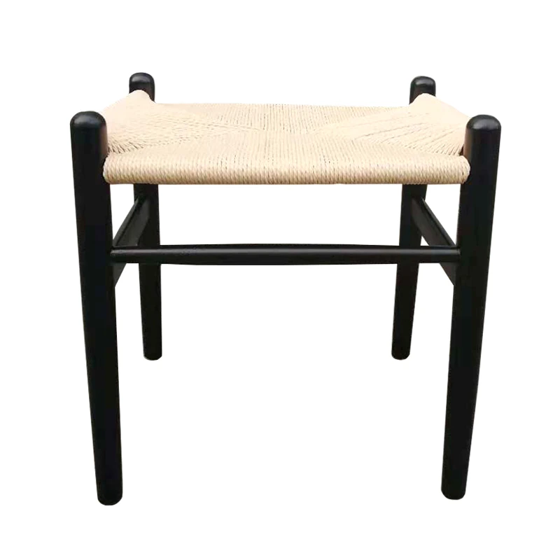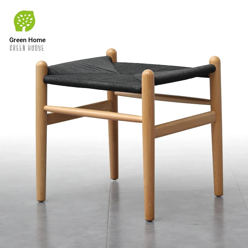 Nordic Minimalist Wooden Stool - Handwoven Rope Seat, Versatile Chinese-Style Bench, Japanese Long Bench, Shoe Changing Stool, Dining Chair, Makeup Stool for Guesthouses and Home Decor.