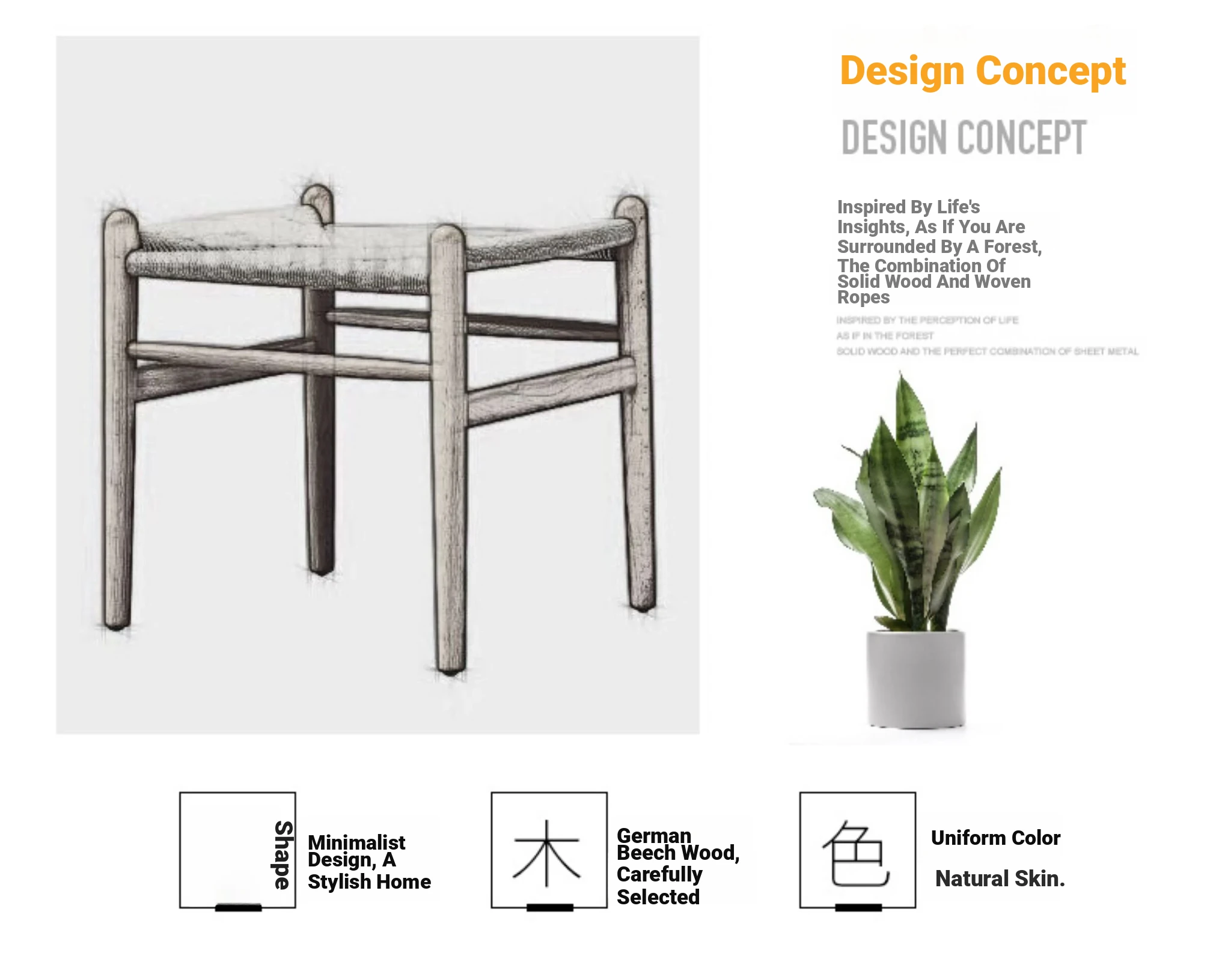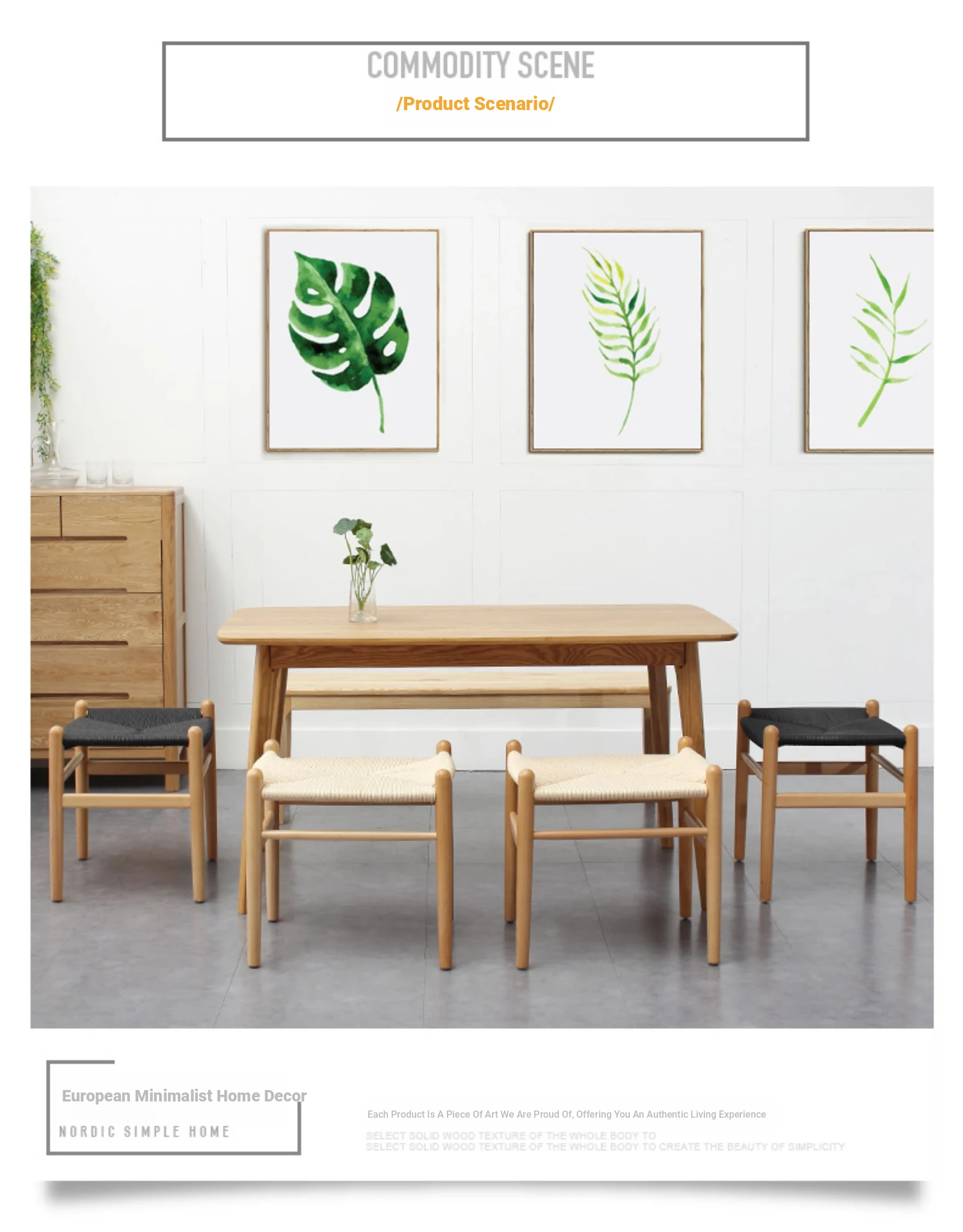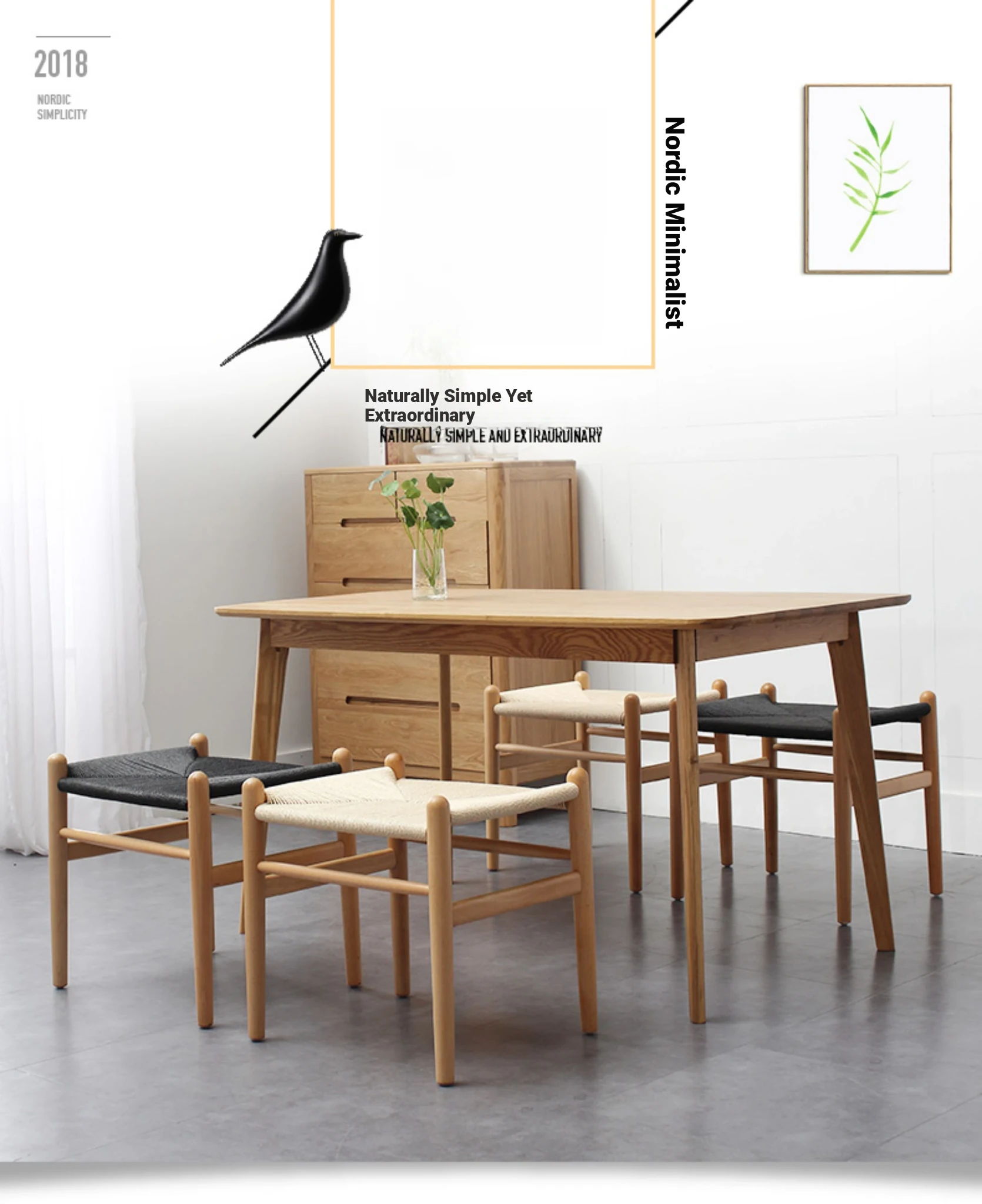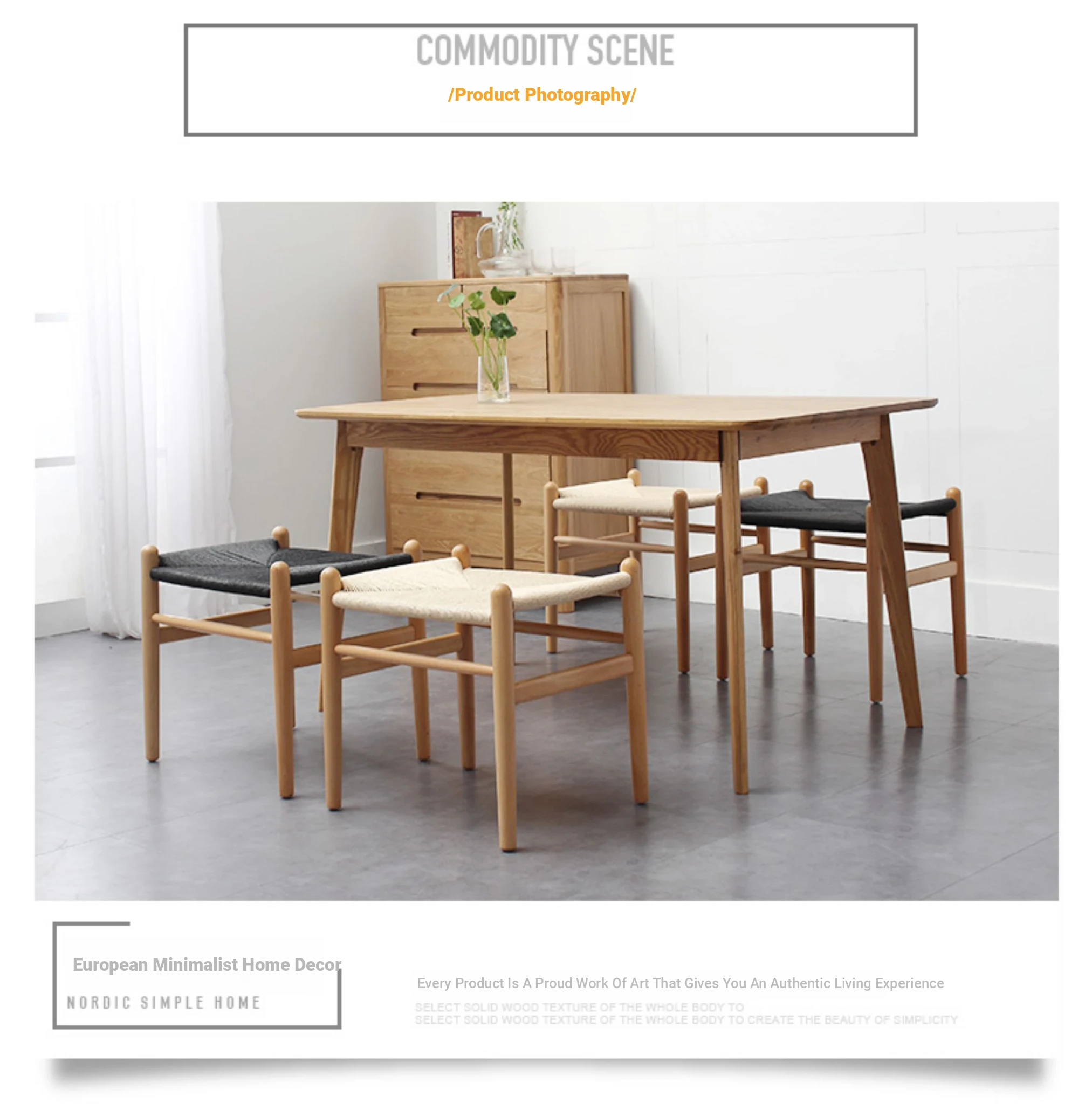Nordic Minimalist Wooden Stool - Handwoven Rope Seat, Versatile Chinese-Style Bench, Japanese Long Bench, Shoe Changing Stool, Dining Chair, Makeup Stool for Guesthouses and Home Decor.