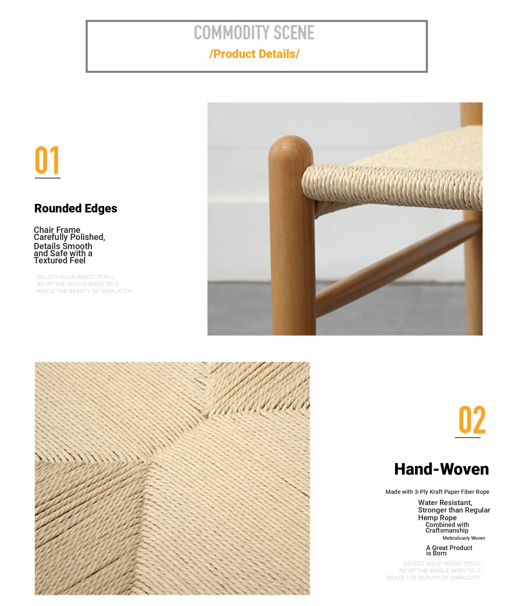 Log color + natural color and black rope