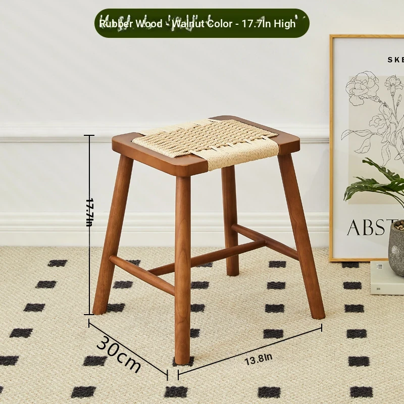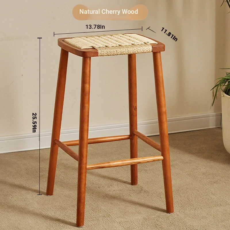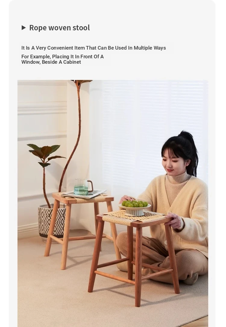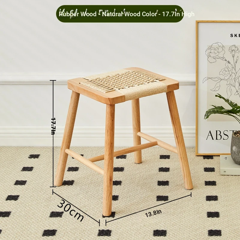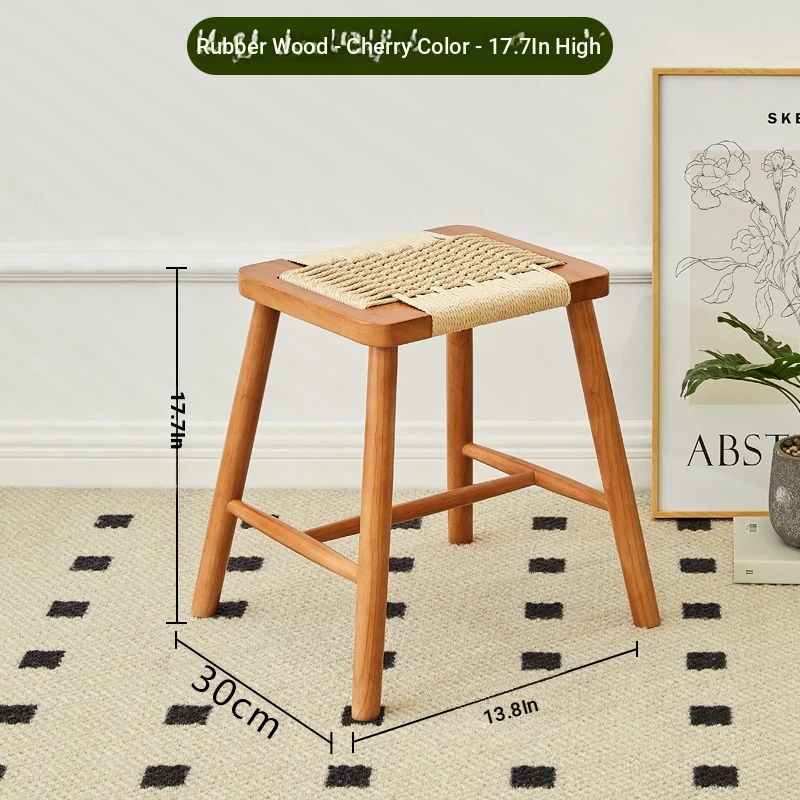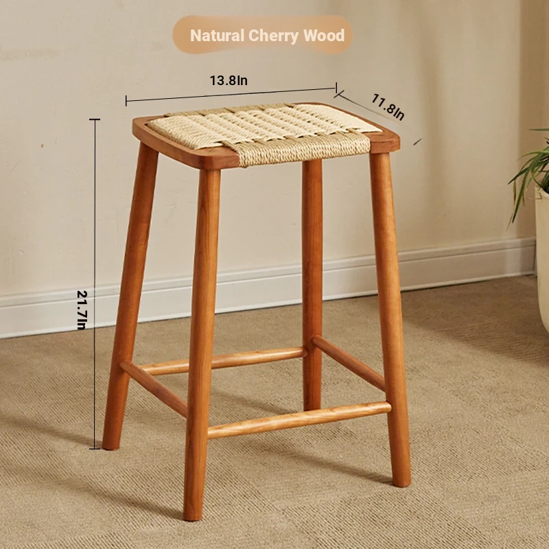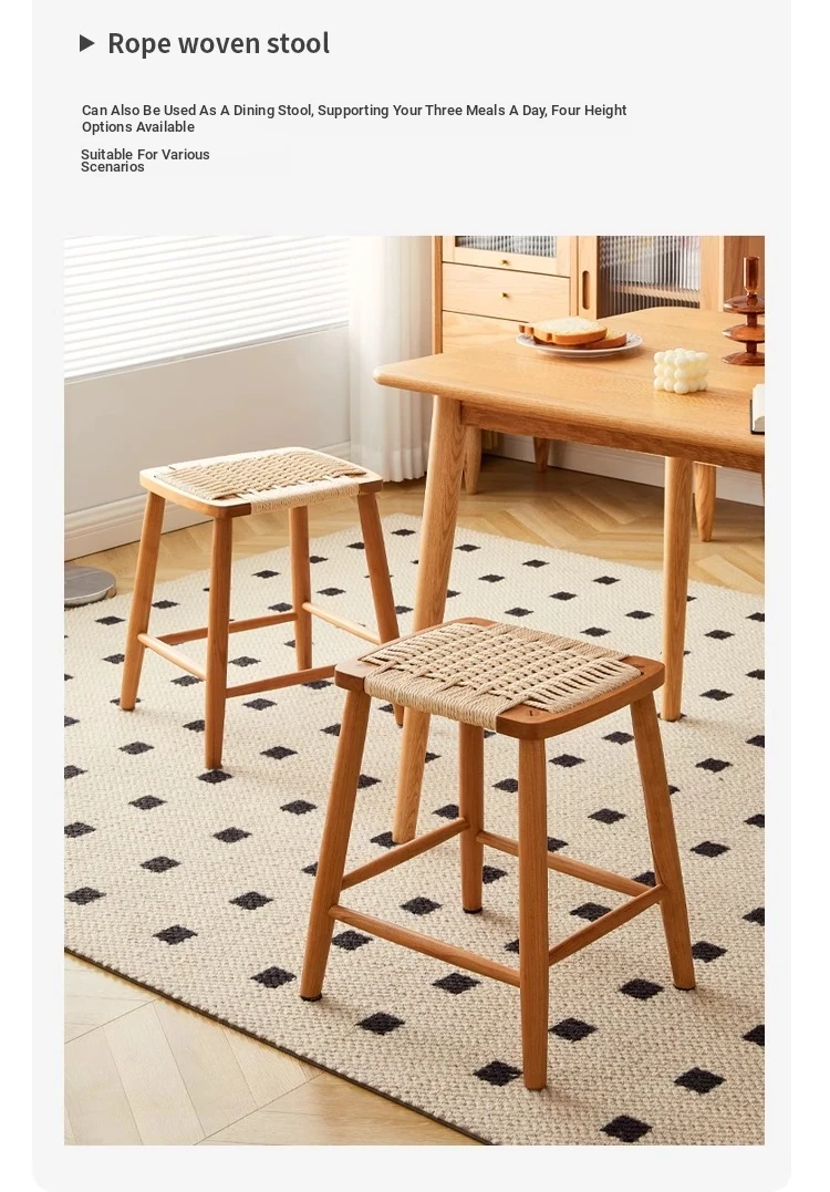 Nordic Solid Wood Woven Stool - Modern Minimalist Bar Stool, Dressing Stool, Shoe Changing Bench, High Bar Chair, Rattan Dining Chair for Stylish Home Decor