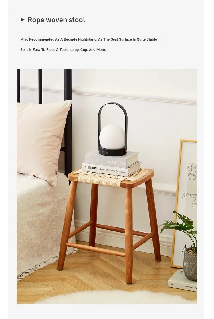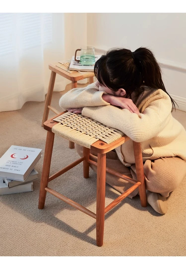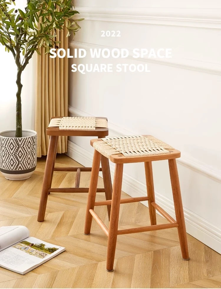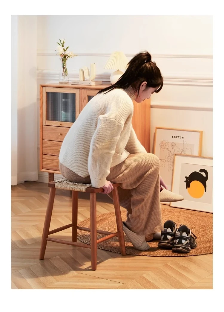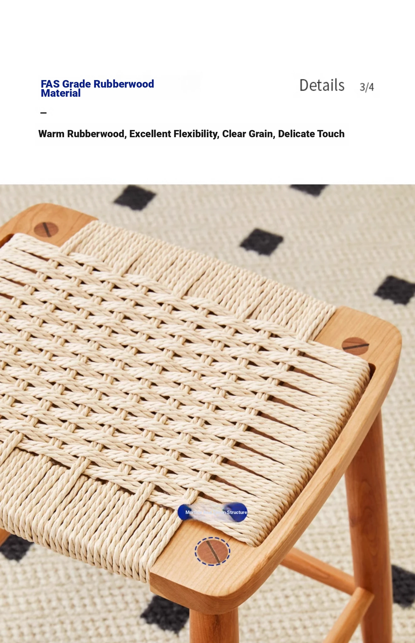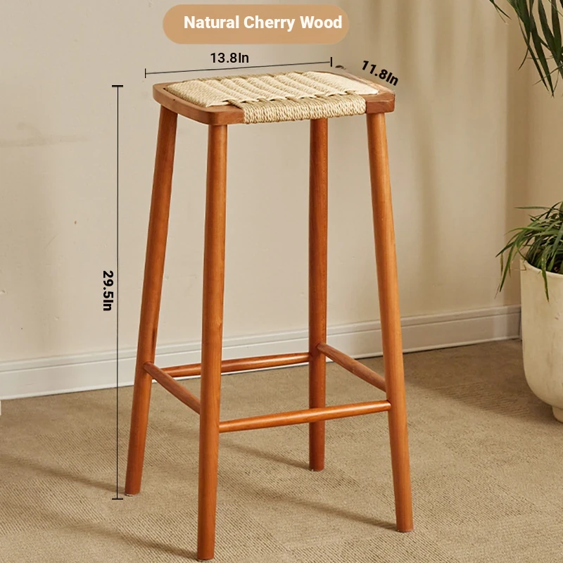 Nordic Solid Wood Woven Stool - Modern Minimalist Bar Stool, Dressing Stool, Shoe Changing Bench, High Bar Chair, Rattan Dining Chair for Stylish Home Decor