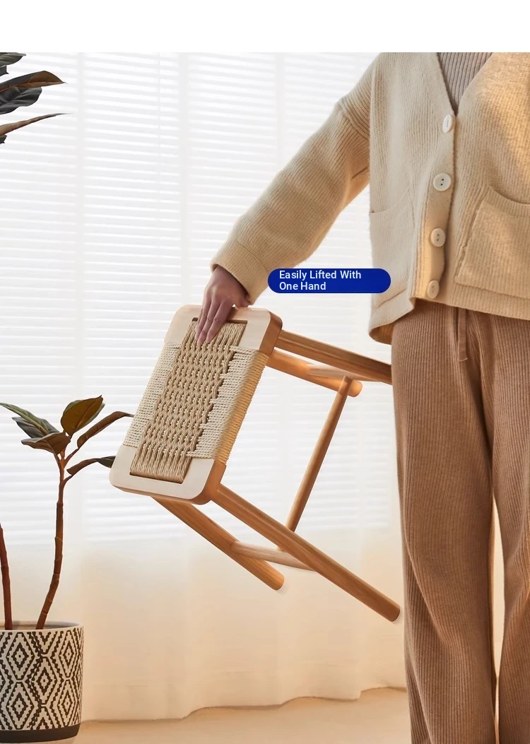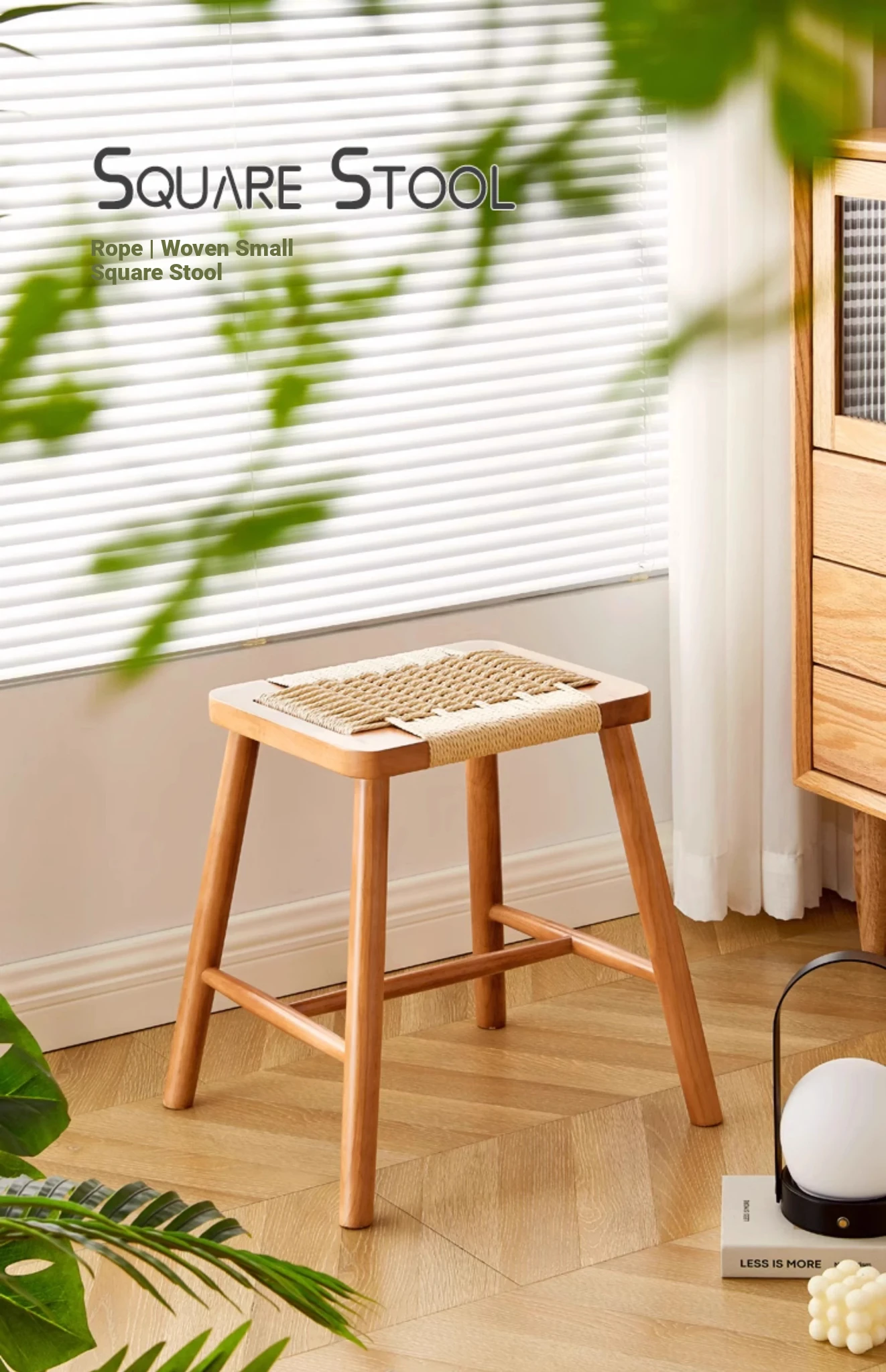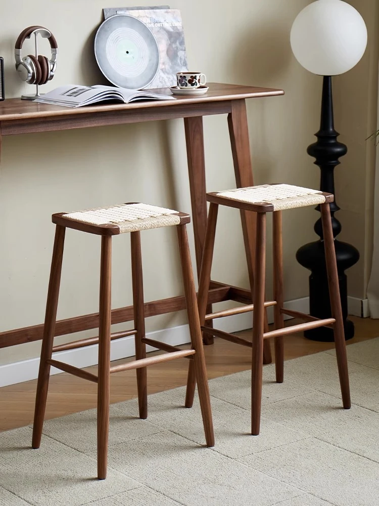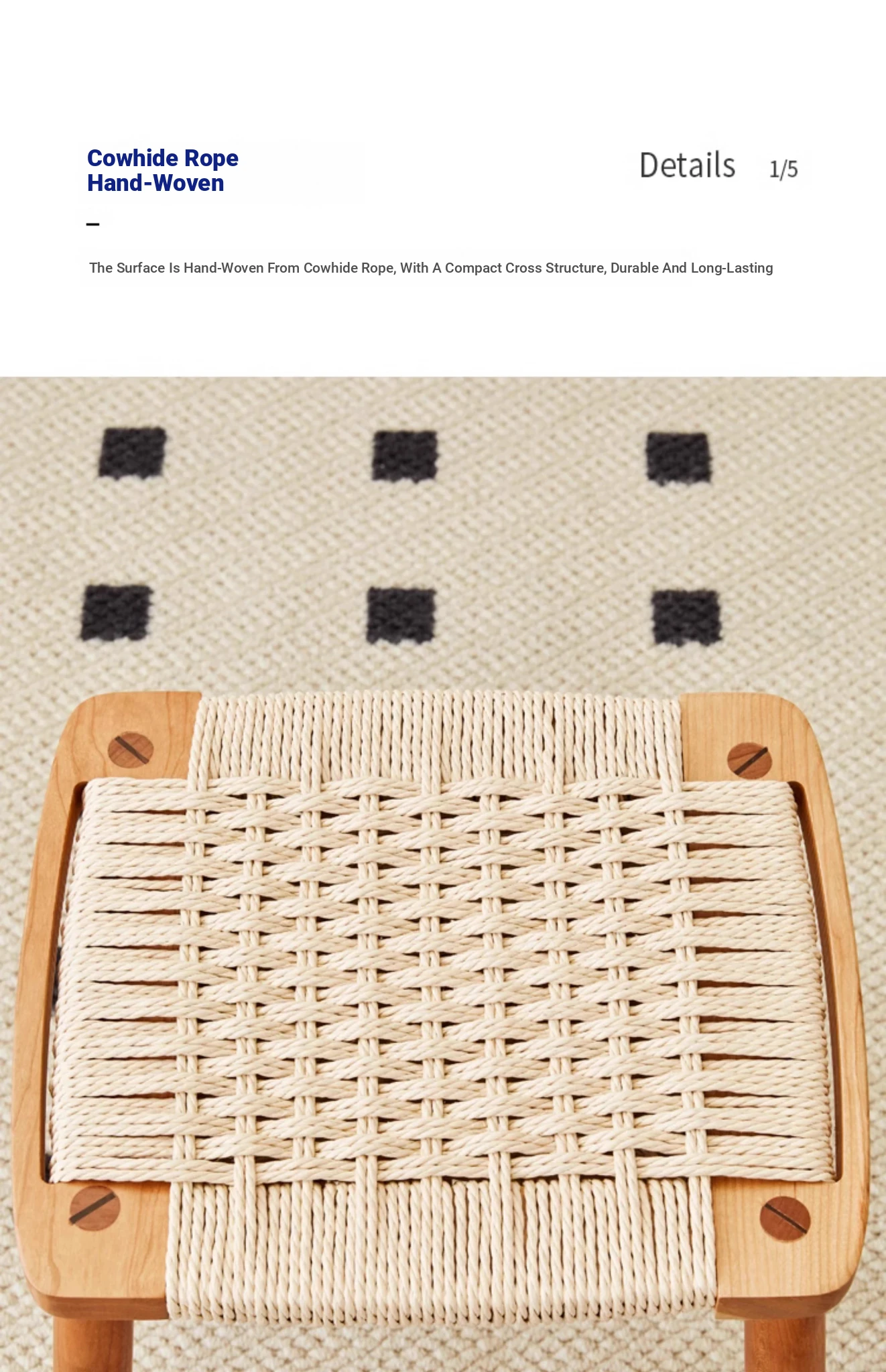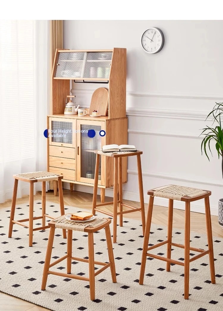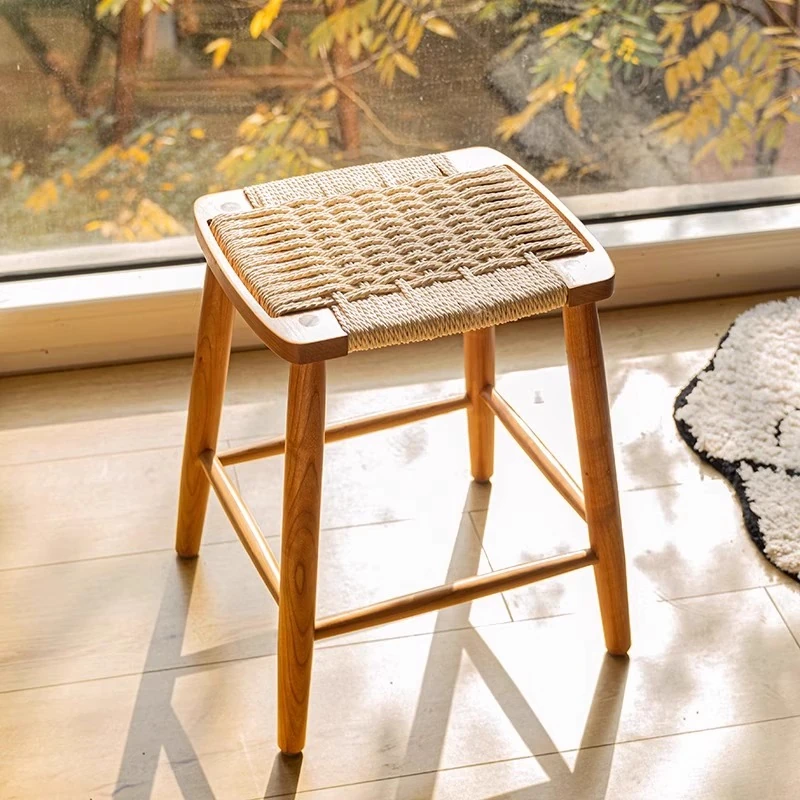 Nordic Solid Wood Woven Stool - Modern Minimalist Bar Stool, Dressing Stool, Shoe Changing Bench, High Bar Chair, Rattan Dining Chair for Stylish Home Decor