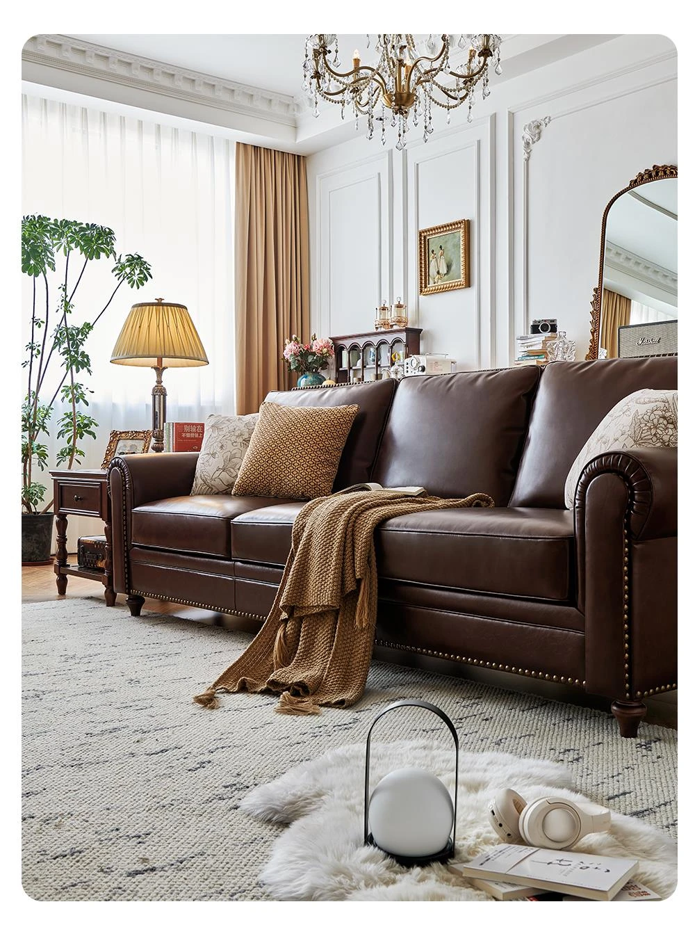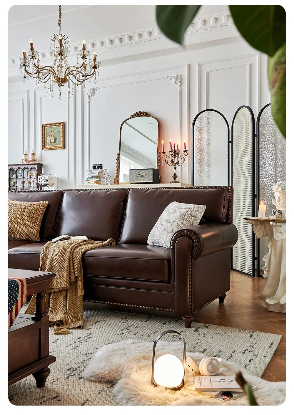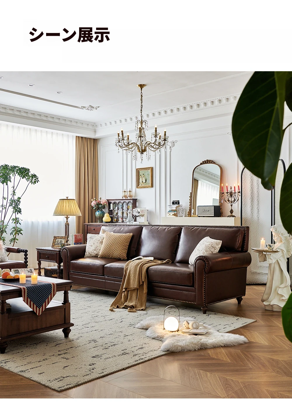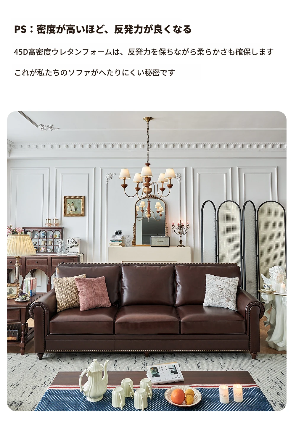 アメリカンスタイルのソファ、大バトンブラウンオイルワックスレザー 本革本皮の4人掛けヴィンテージリビングルーム家具。高級感あふれるデザインで、居心地のよい空間を演出します!