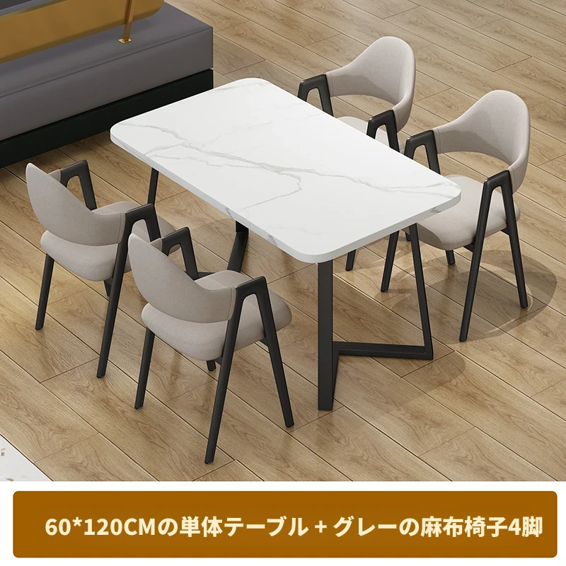 60*120ホワイトテーブル+グレー麻布椅子*4