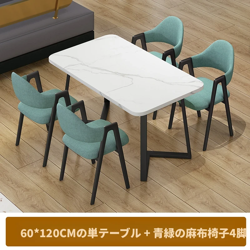 60*120ホワイトテーブル+ライトグリーン麻布椅子*4