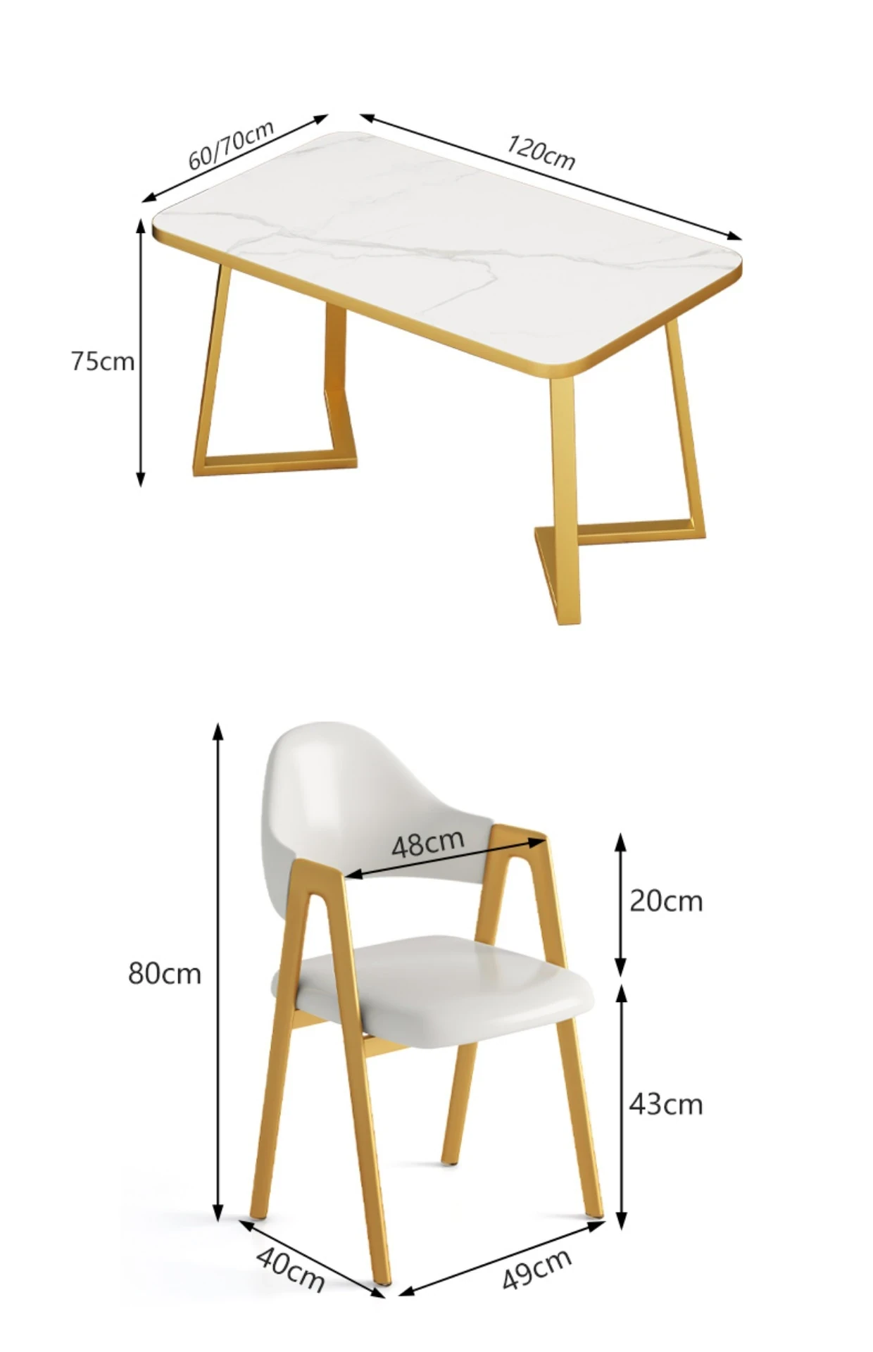 60*120ホワイトテーブル+黄色PUレザー椅子*4
