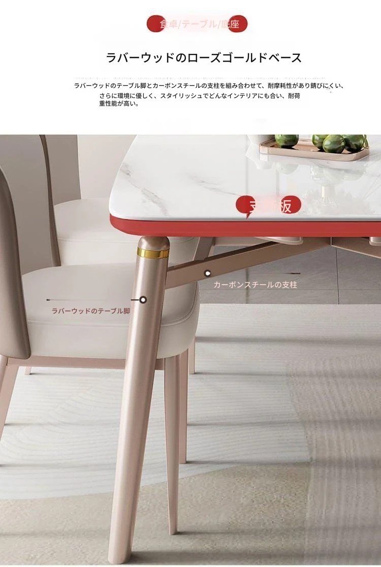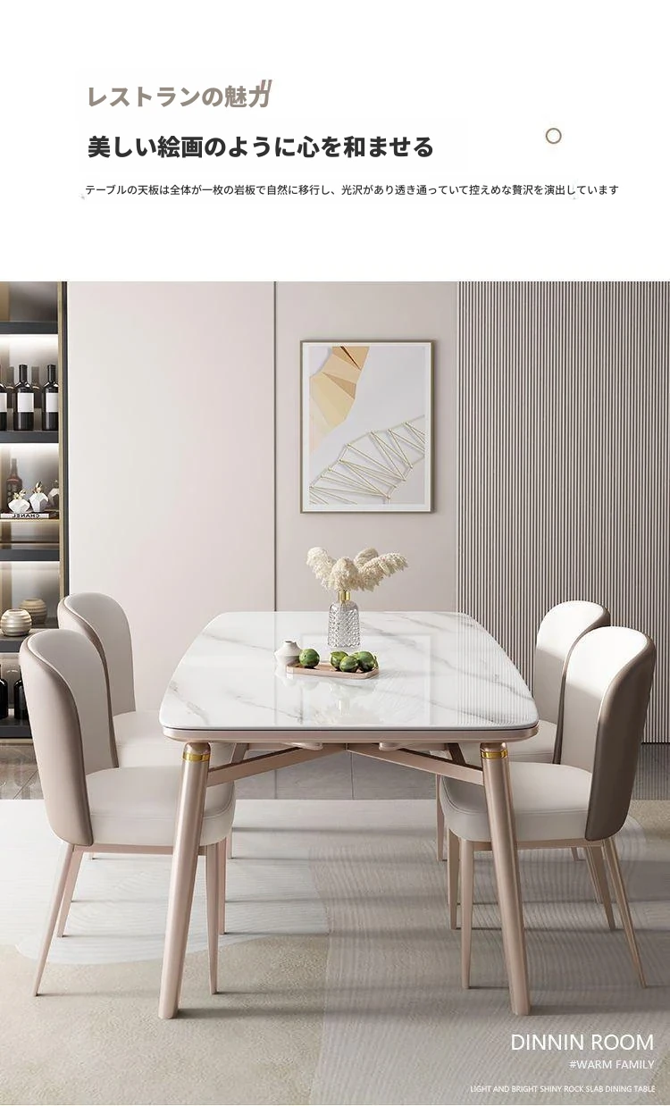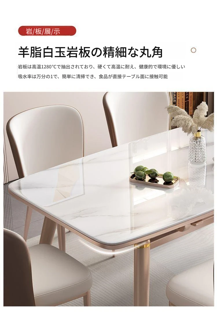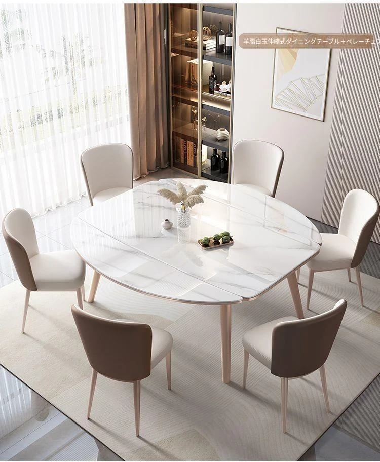 140*80*75cm/【12mm岩板】伸縮食卓+ベーレ椅子*6