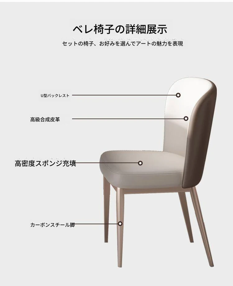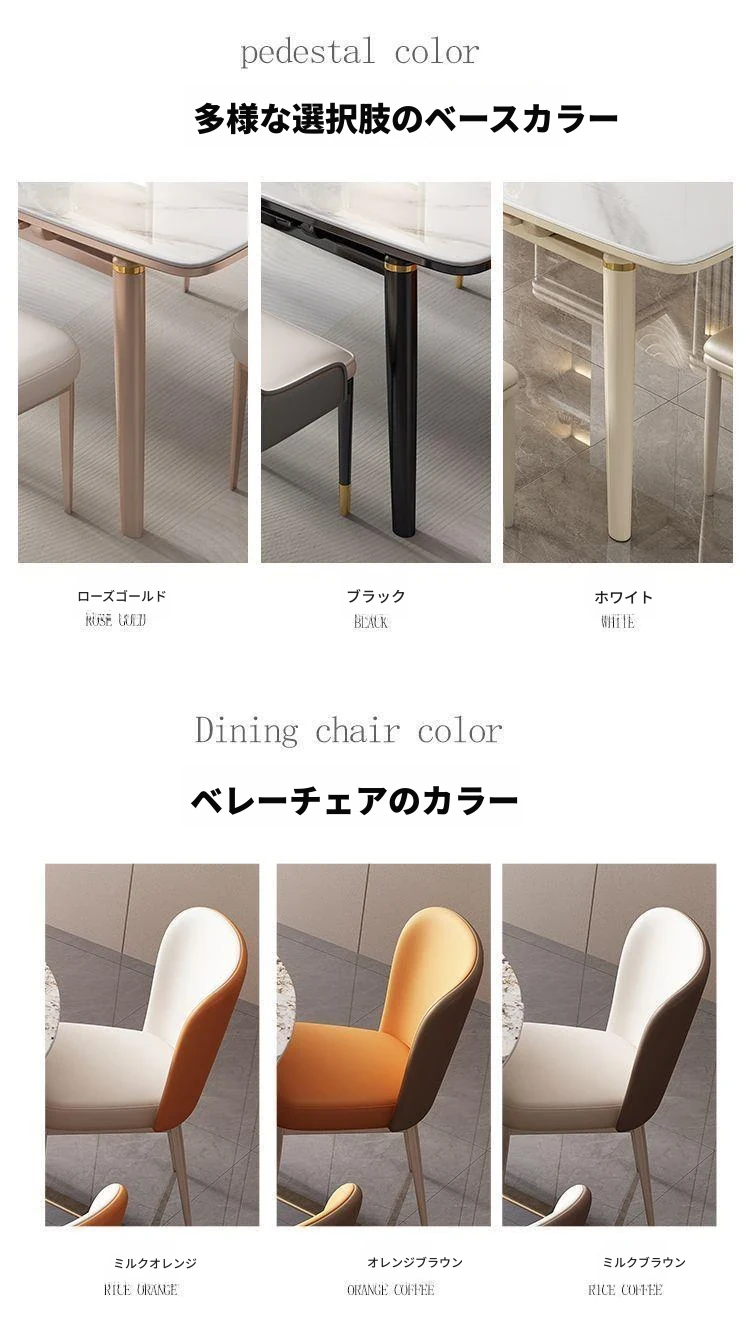 130*80*75cm/【12mm岩板】伸縮食卓+ベーレ椅子*6