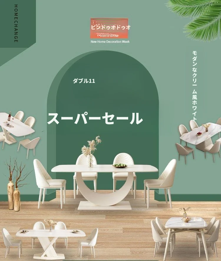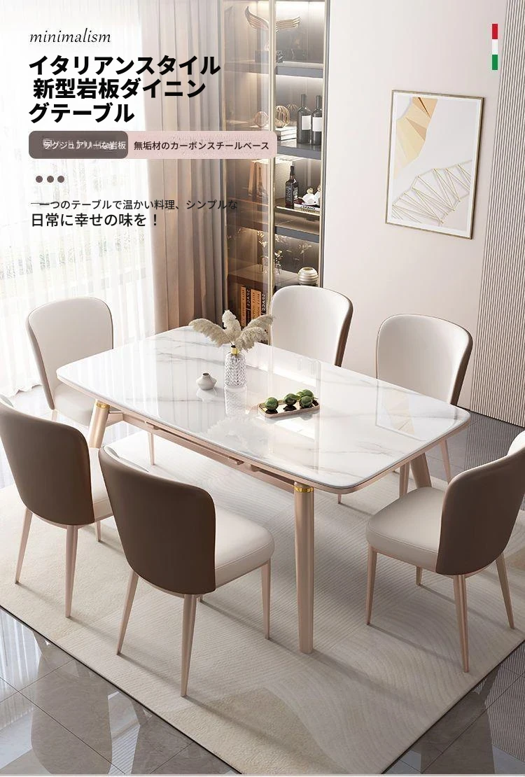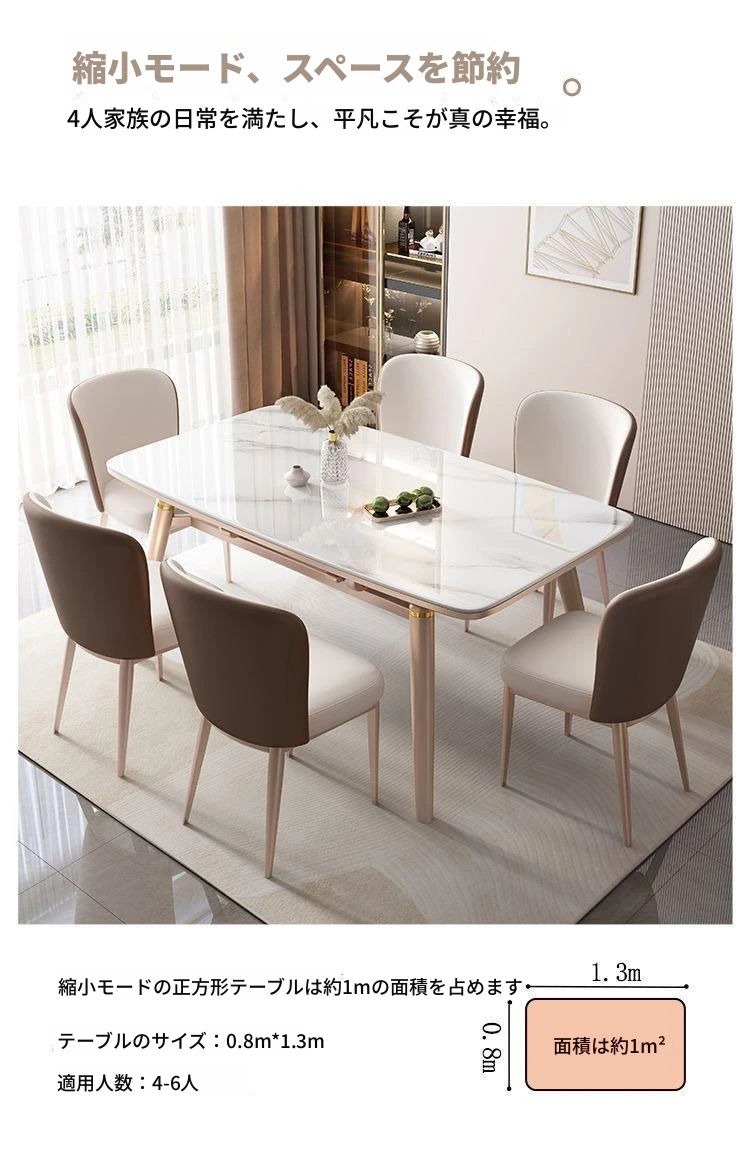 130*80*75cm/【12mm岩板】伸縮食卓+広派椅子*6