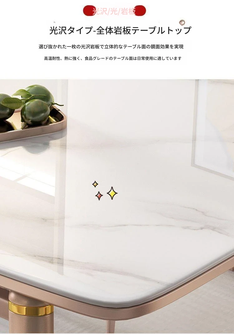 140*80*75cm/【12mm岩板】伸縮食卓+パイナップル椅子*6