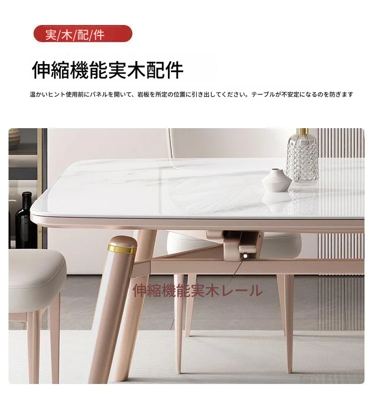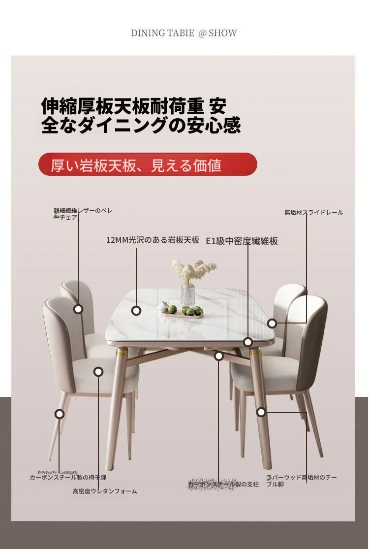 130*80*75cm/【12mm岩板】伸縮食卓+広派椅子*4