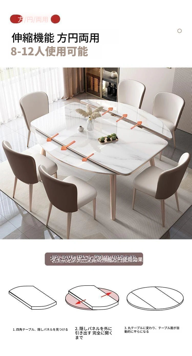 130*80*75cm/【12mm岩板】伸縮食卓+ベーレ椅子*8