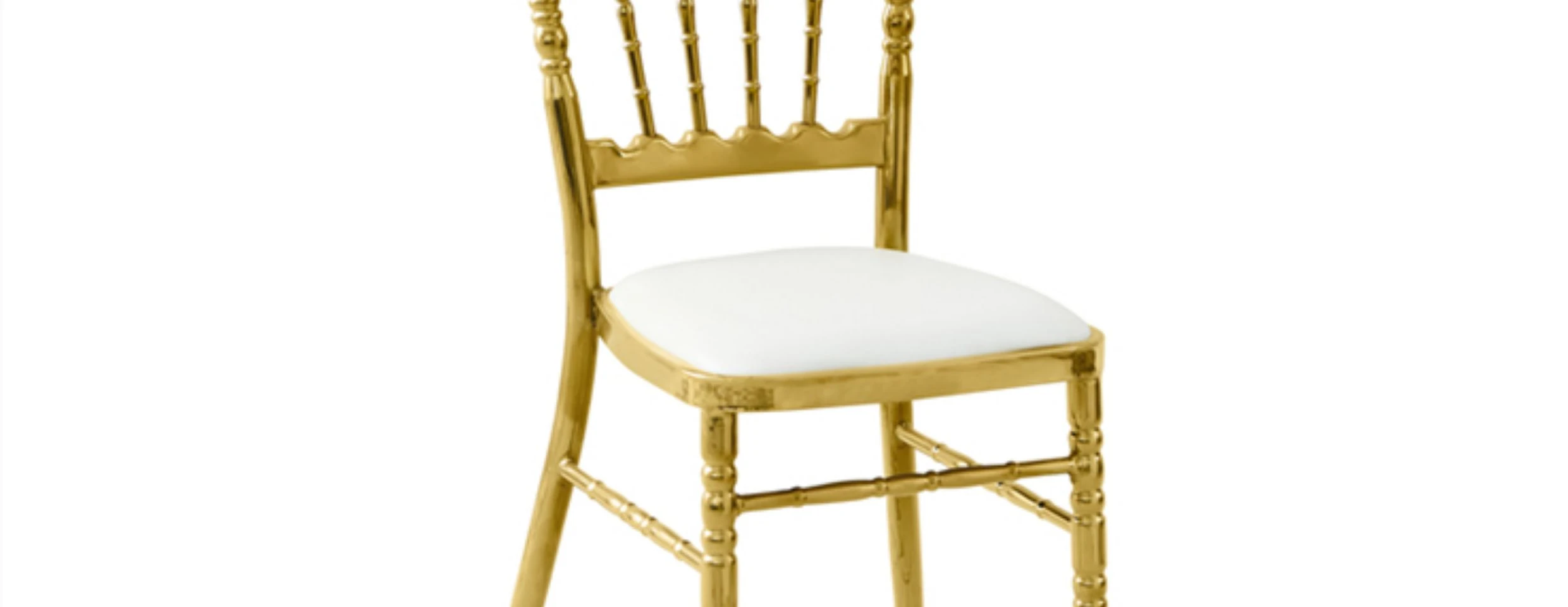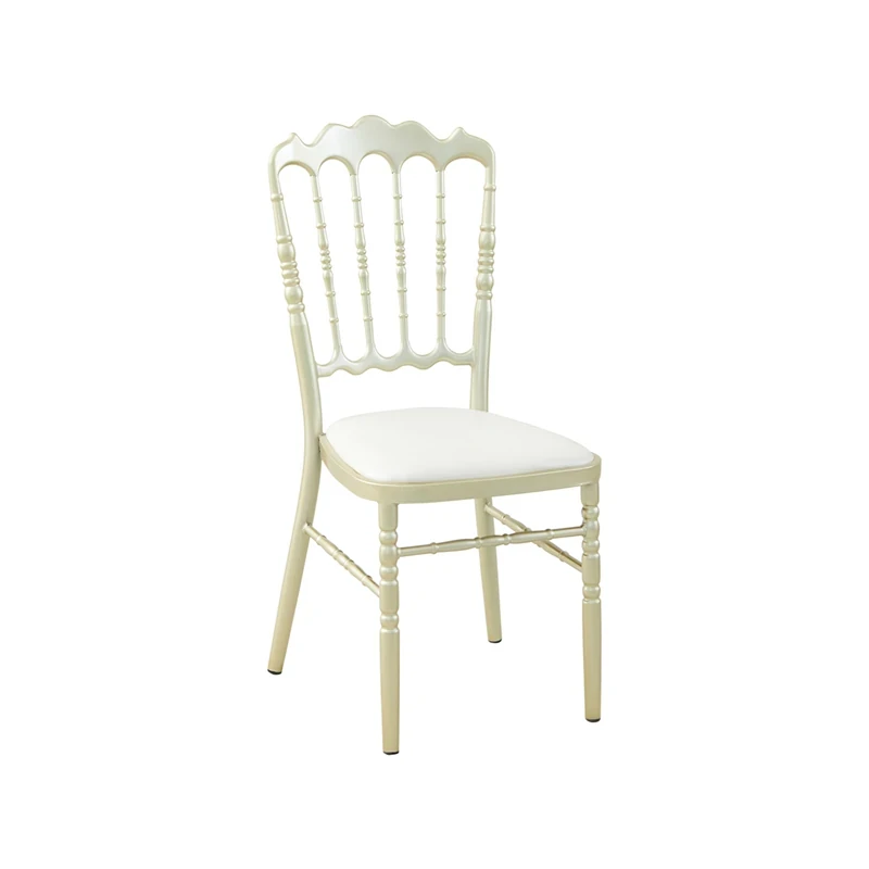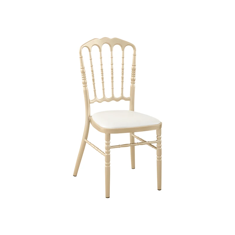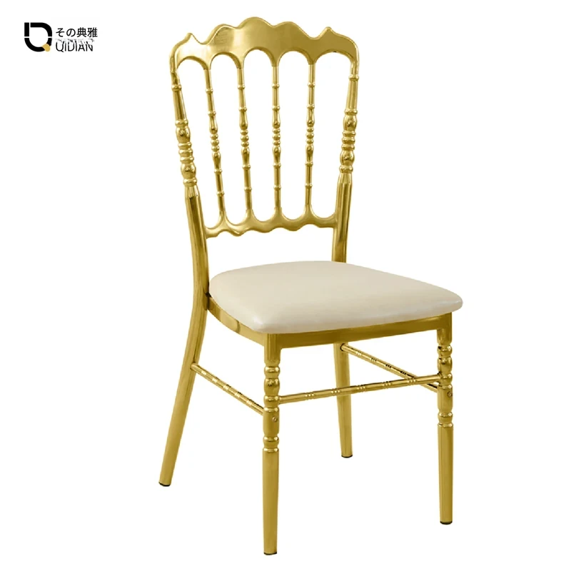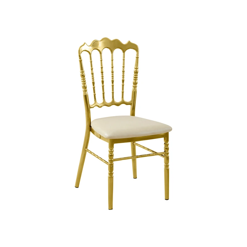 結婚式会場に最適!金銀色の太陽椅子 - ナポレオンスタイルのホテルチェア、竹節デザイン、水晶ホール用の円形背もたれ、電鍍仕上げで高級感を演出。特別な日を華やかに彩る一脚です!