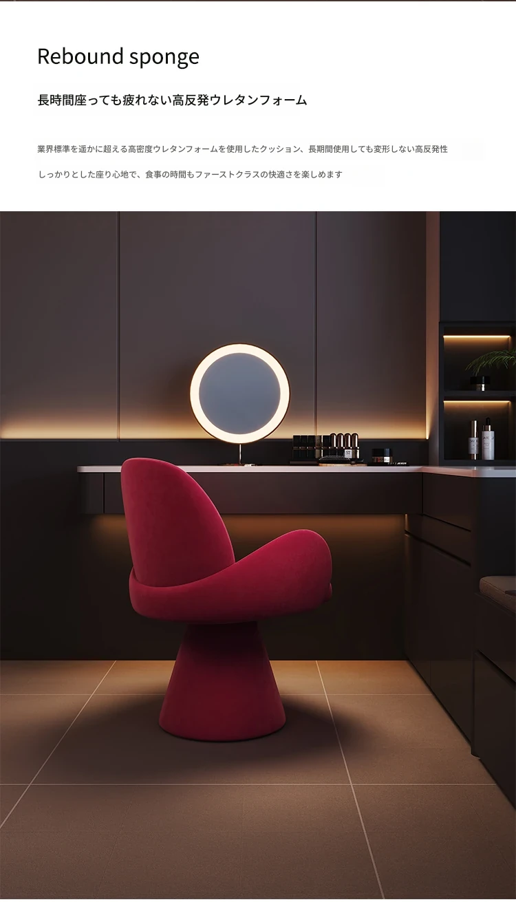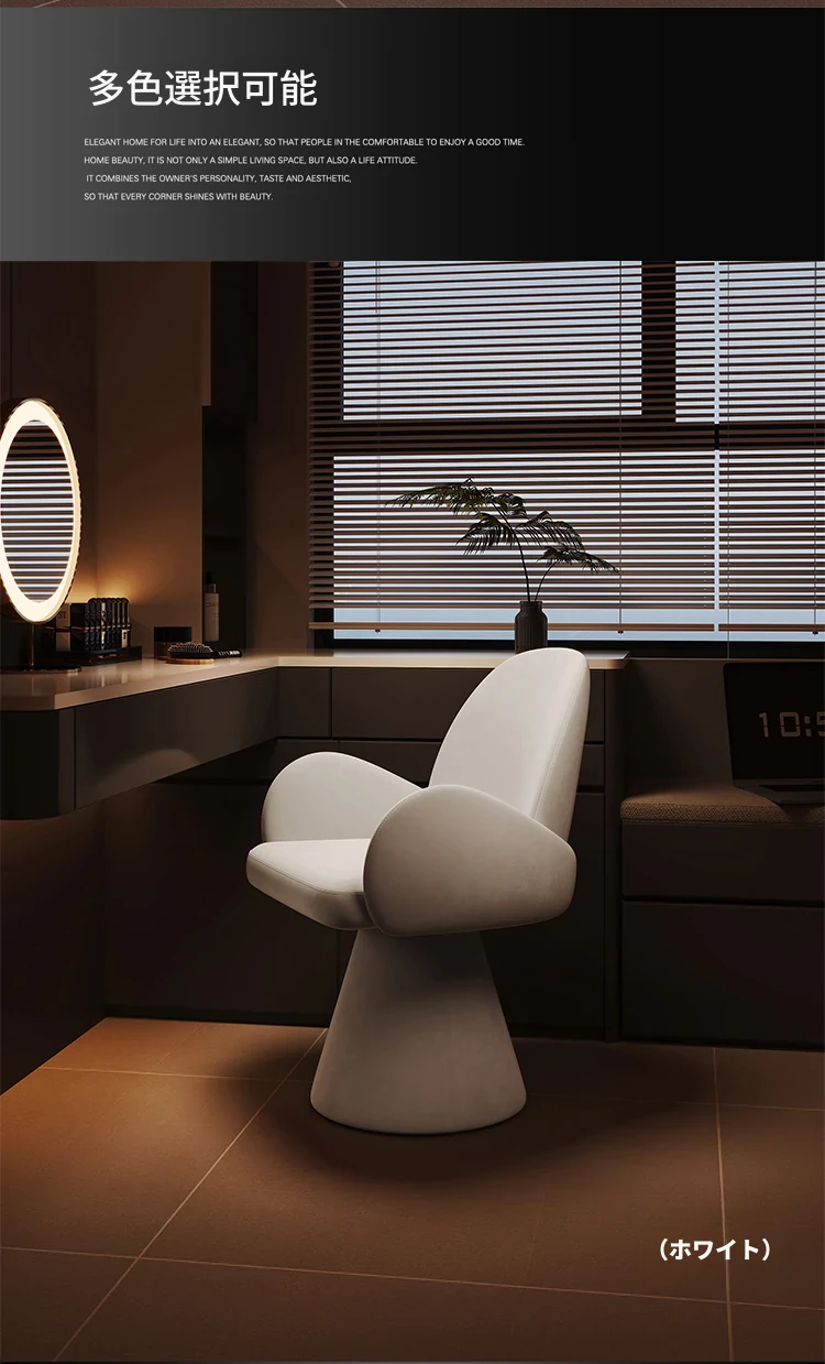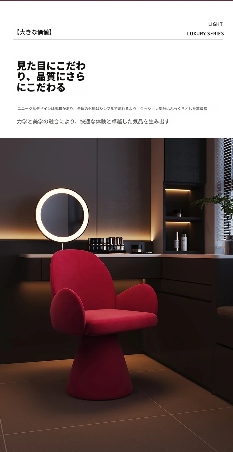 ラグジュアリー感漂う化粧椅子!回転式で使いやすい、シンプルでスタイリッシュなデザイン。おしゃれな女性のためのネイル椅子にも最適!快適な背もたれ付きで、毎日のメイクアップを楽しくサポートします。