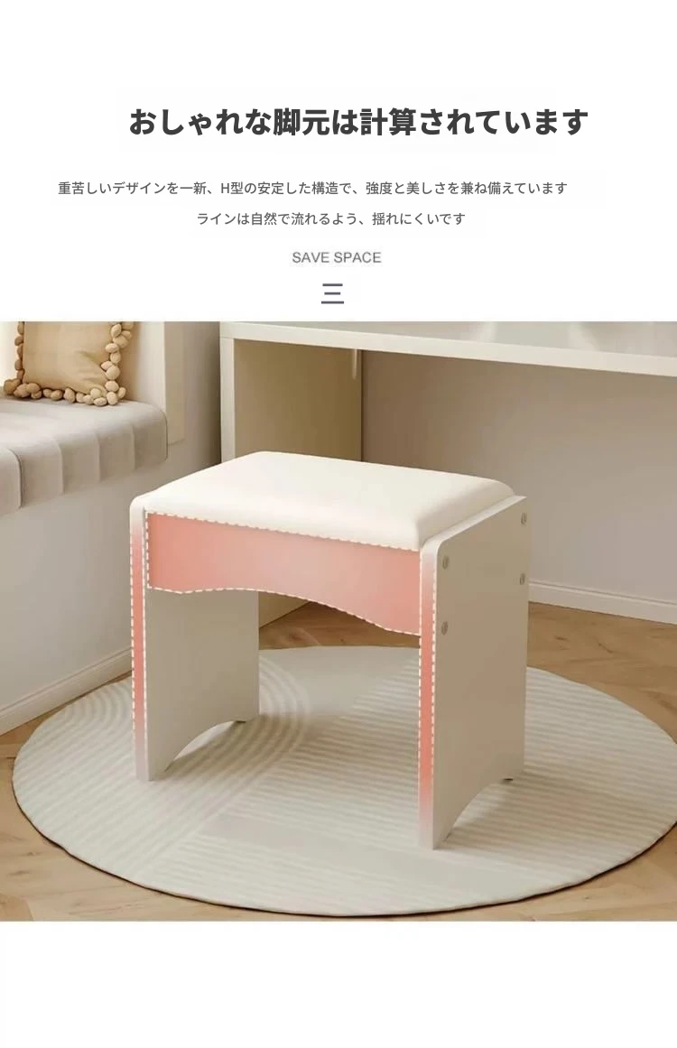 軽やかで高級感漂う化粧台用椅子 - 女子のための主寝室や寮にぴったりな美しさと機能性を兼ね備えた美容・ネイル用スツール!おしゃれで快適な時間をお約束します。