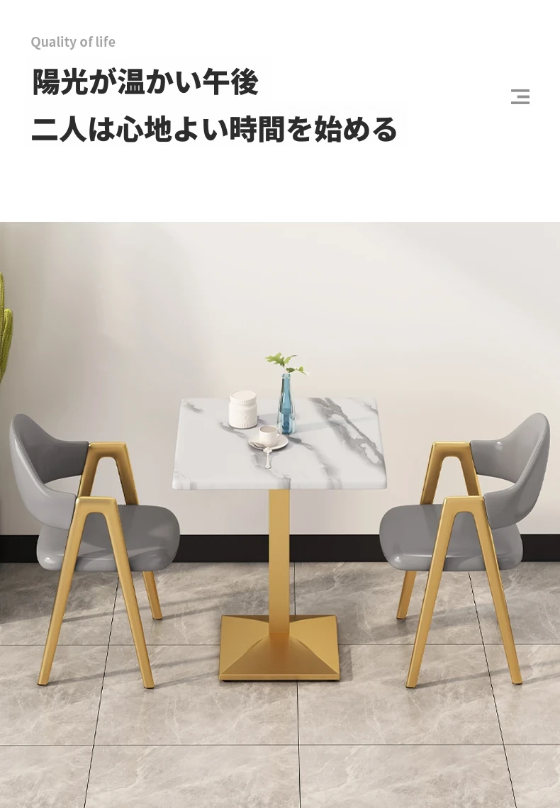 ラグジュアリーな西洋料理カフェの休憩エリアに最適!スイーツやミルクティーを楽しむための商業用ダイニングテーブル。接客や商談にぴったりのデザイン性と機能性を兼ね備えたテーブル&チェア。快適なひとときを提供します!