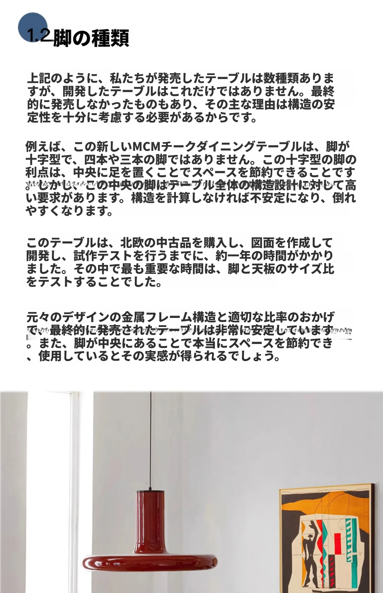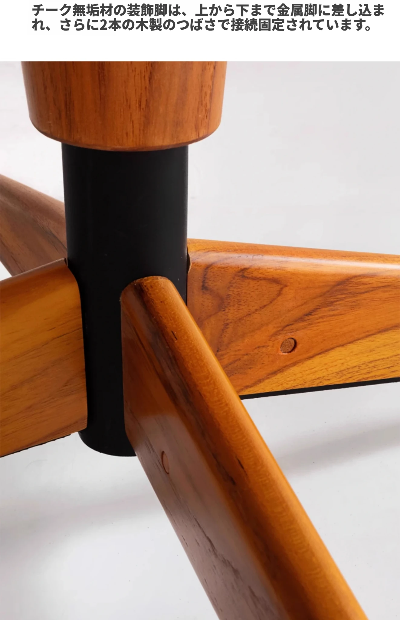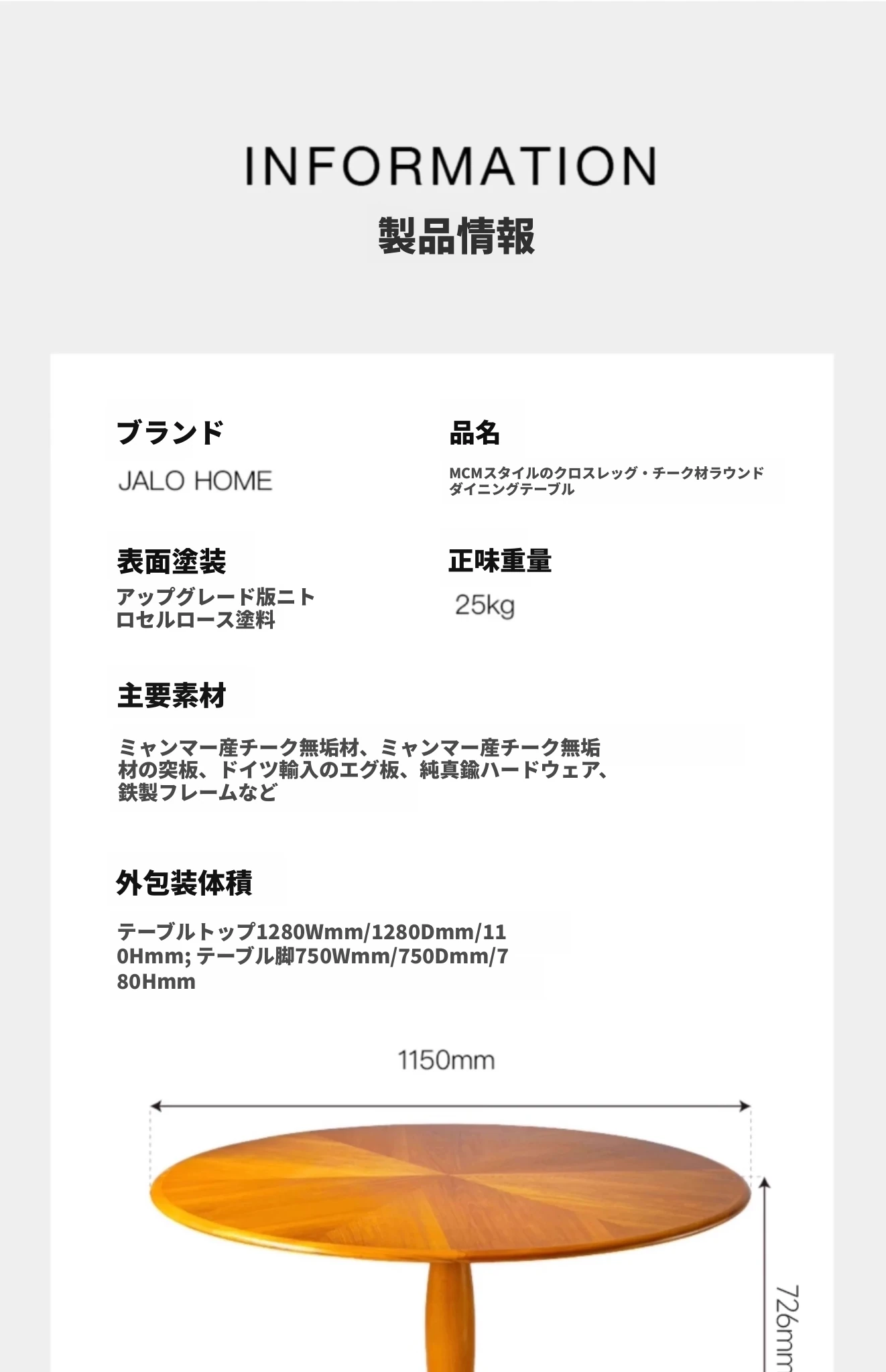 MCMスタイルのクロスレッグ・チーク材ラウンドダイニングテーブル