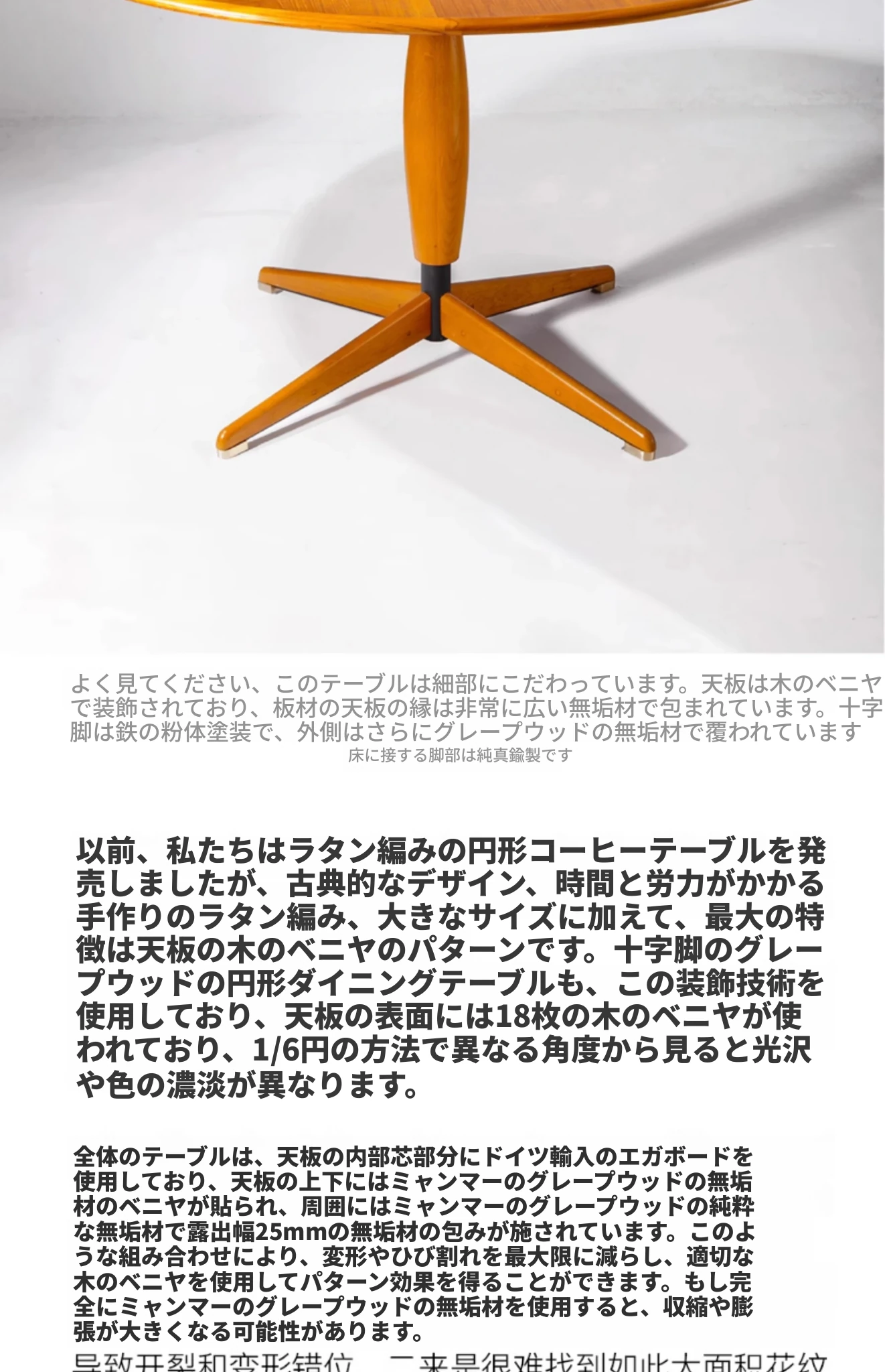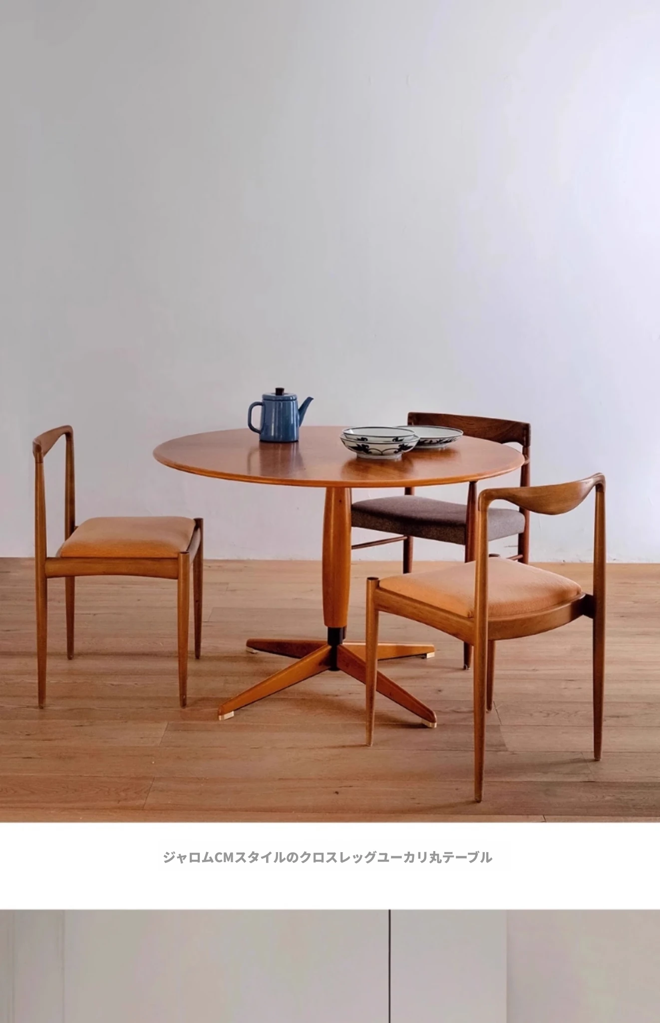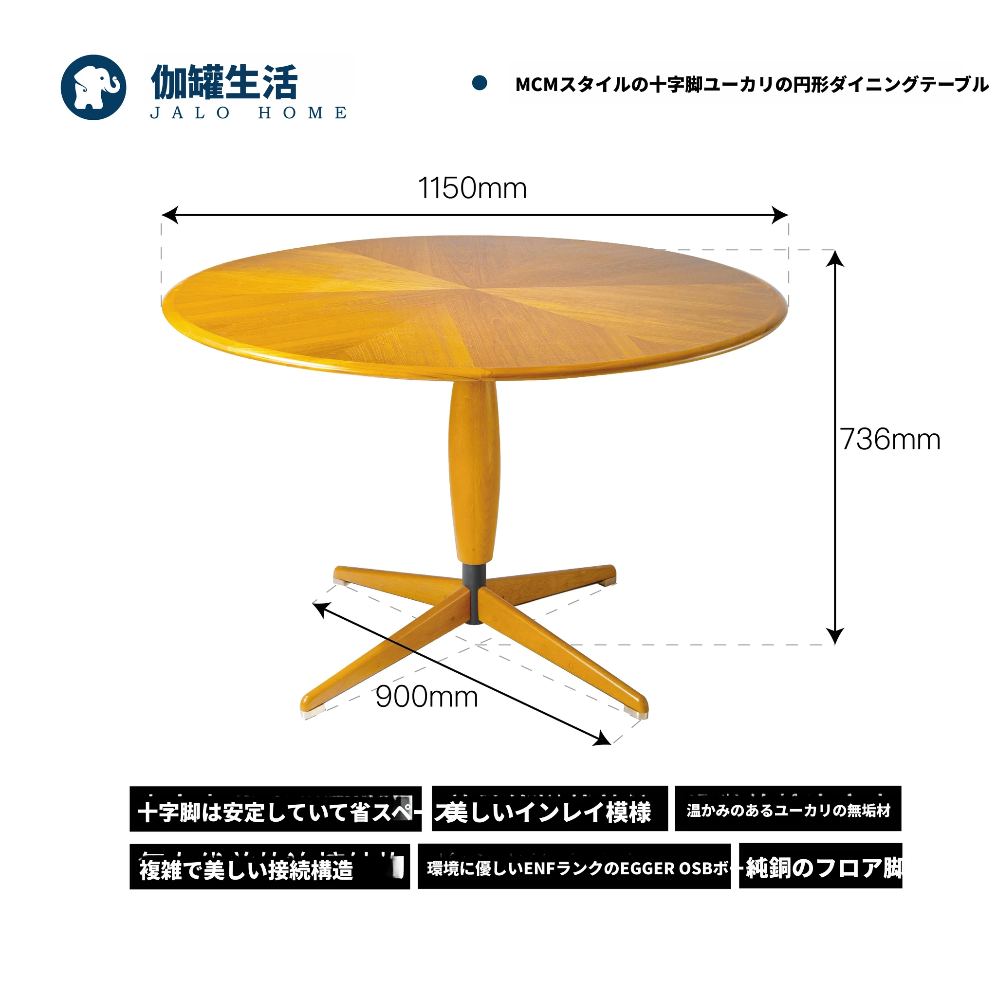 伽罗生活 MCMスタイルのクロスレッグユーカリウッドラウンドダイニングテーブル - 北欧ヴィンテージの魅力が詰まったおしゃれな円卓!あなたのダイニングに洗練された雰囲気をプラス。