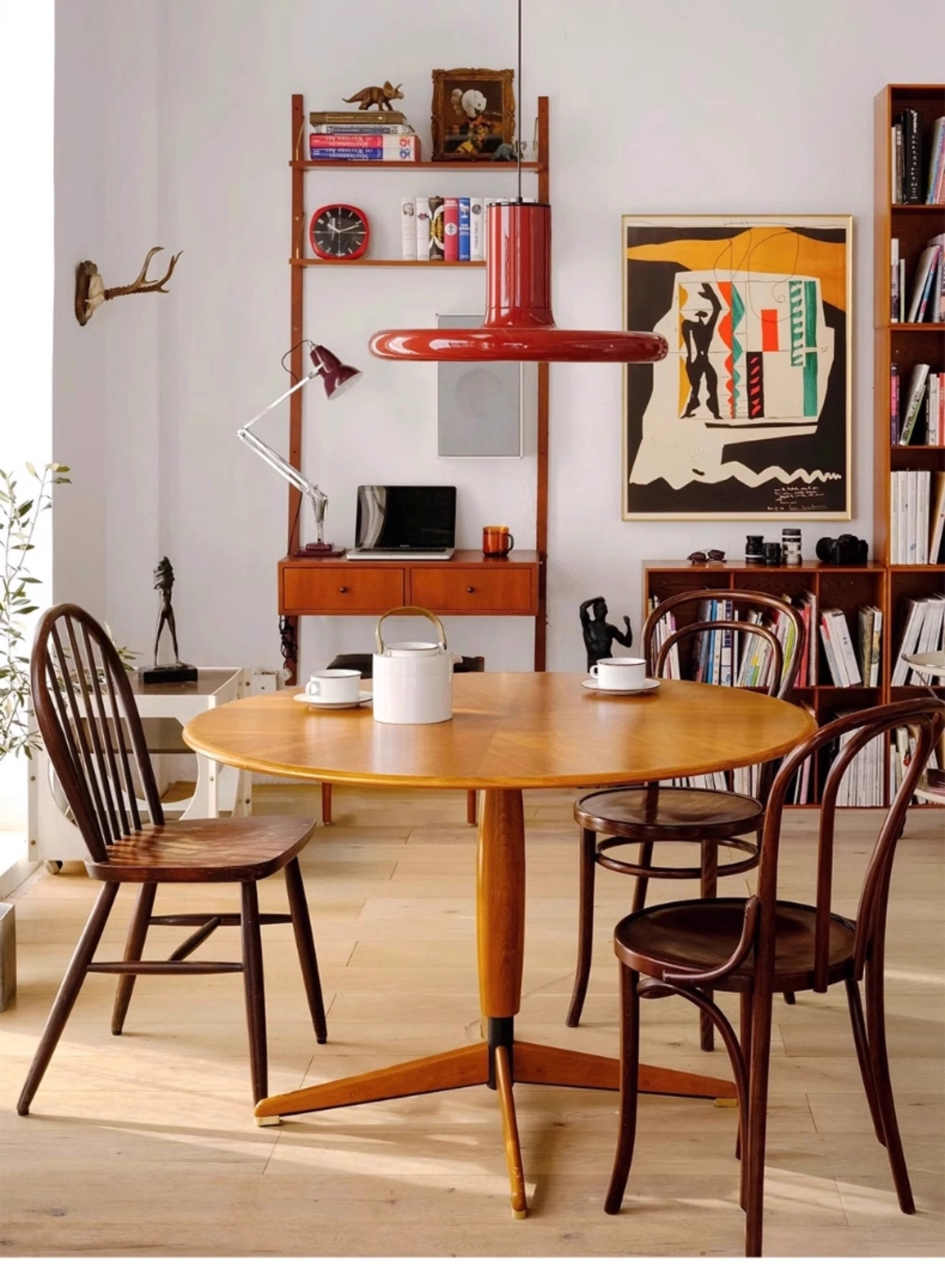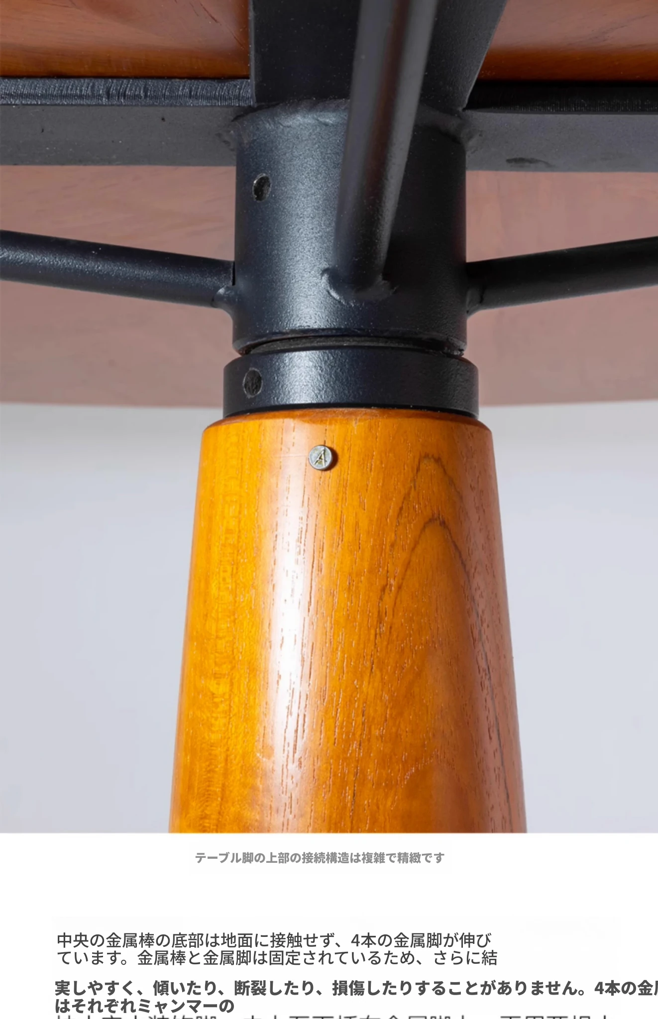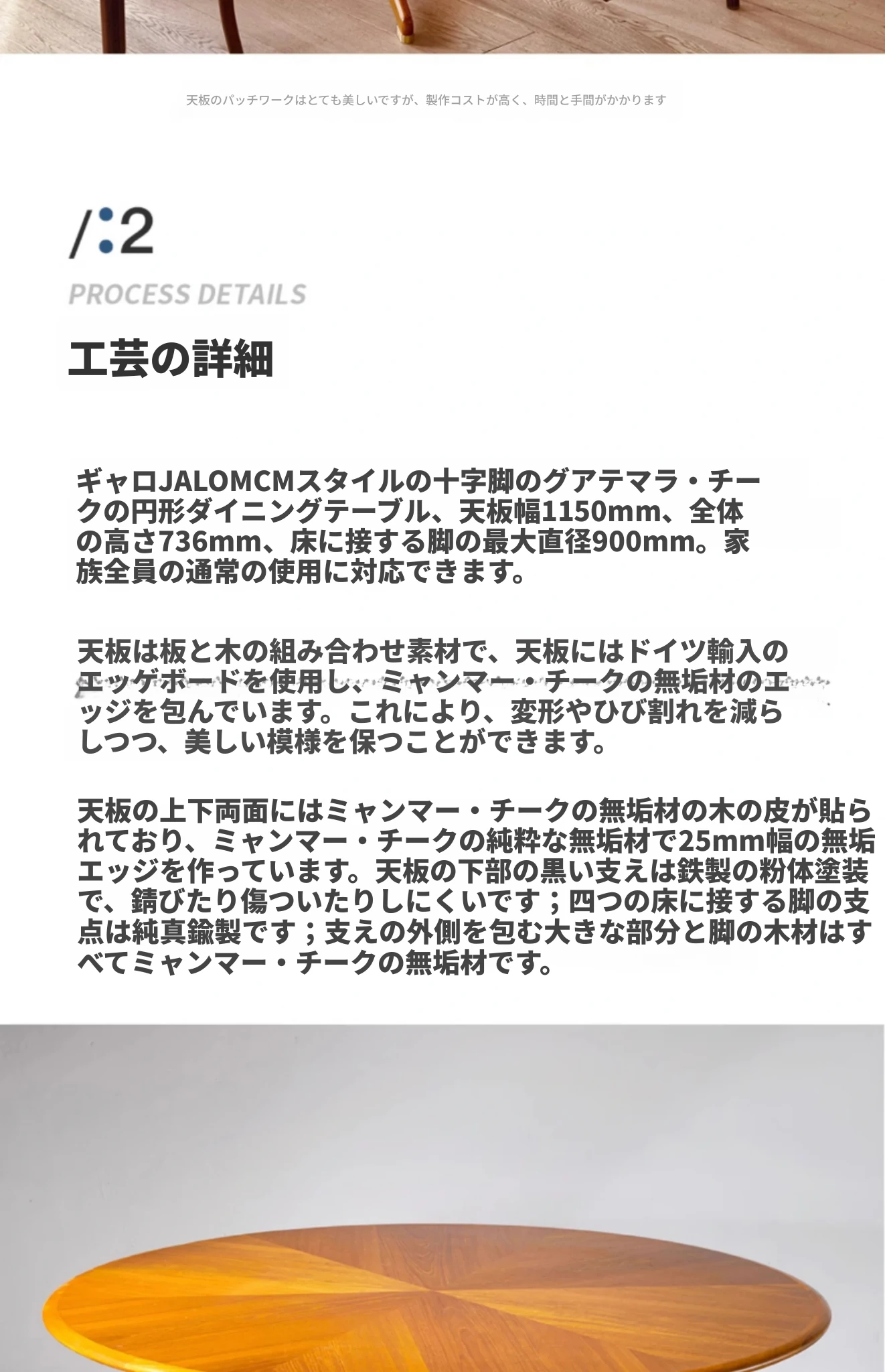 伽罗生活 MCMスタイルのクロスレッグユーカリウッドラウンドダイニングテーブル - 北欧ヴィンテージの魅力が詰まったおしゃれな円卓!あなたのダイニングに洗練された雰囲気をプラス。