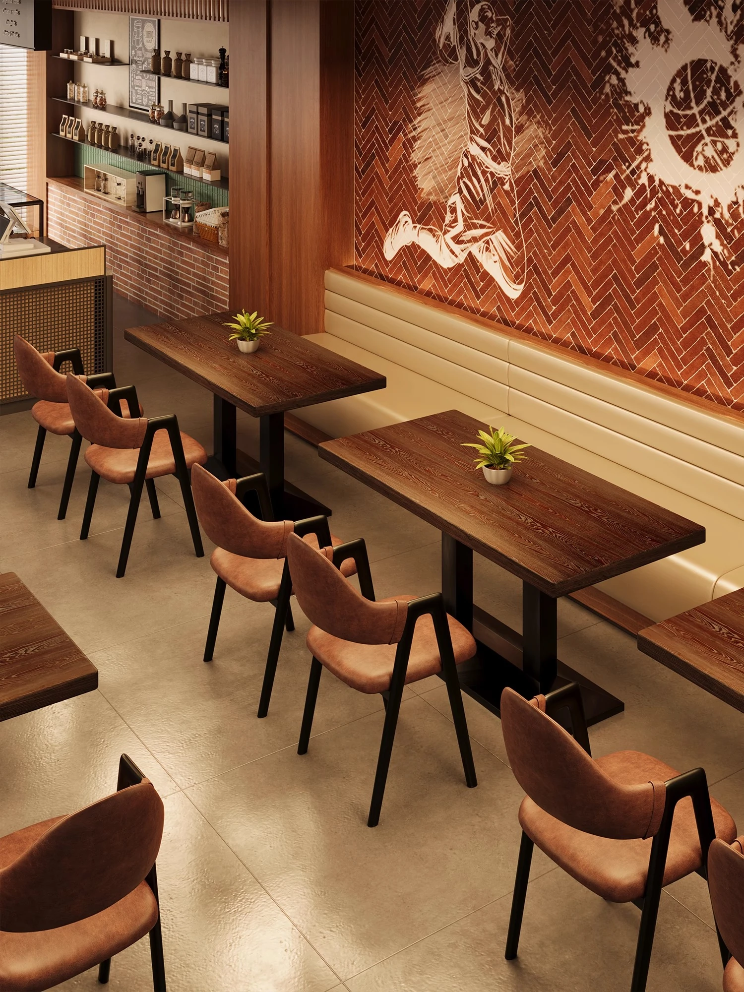 香港スタイルのレストラン向けテーブルセット|火鍋・焼肉・カフェ・タピオカ店に最適!長方形テーブルでおしゃれな食事空間を演出!商業用にも最適な高品質デザイン。