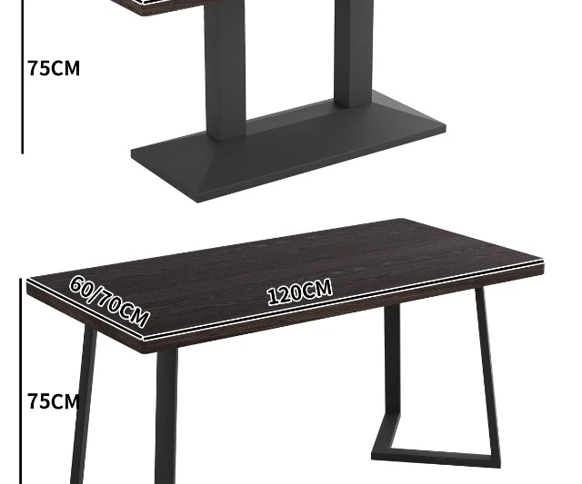 120x70【黒鉄フレーム】コーヒーカラー長方形テーブル(厚手天板)