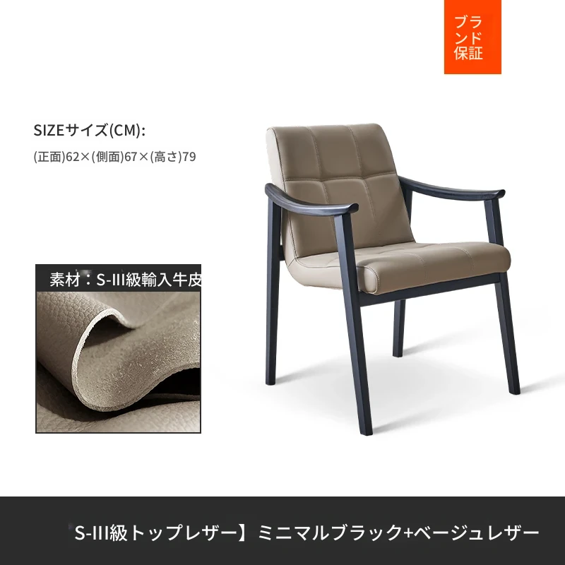 モバン イタリアンミニマリズム ダイニングチェア 高級感あふれる ホテル・別荘・レストラン向け 本革使用の木製アームチェア