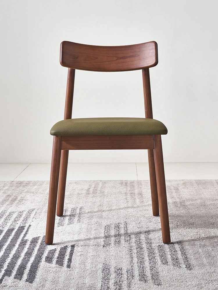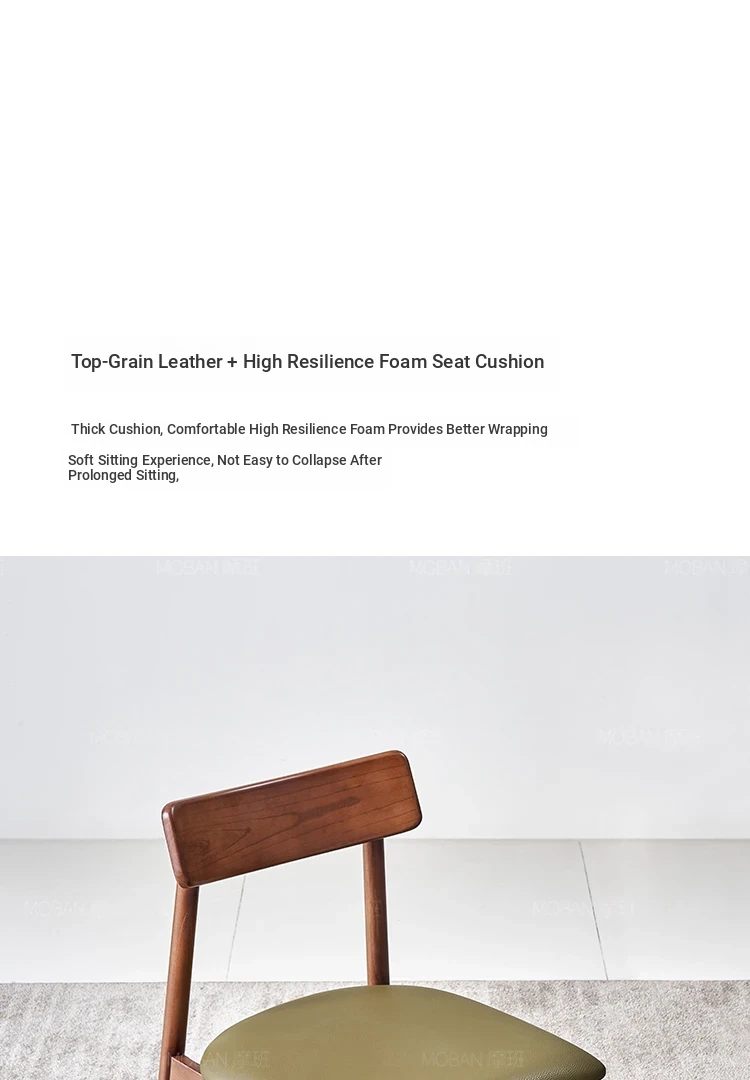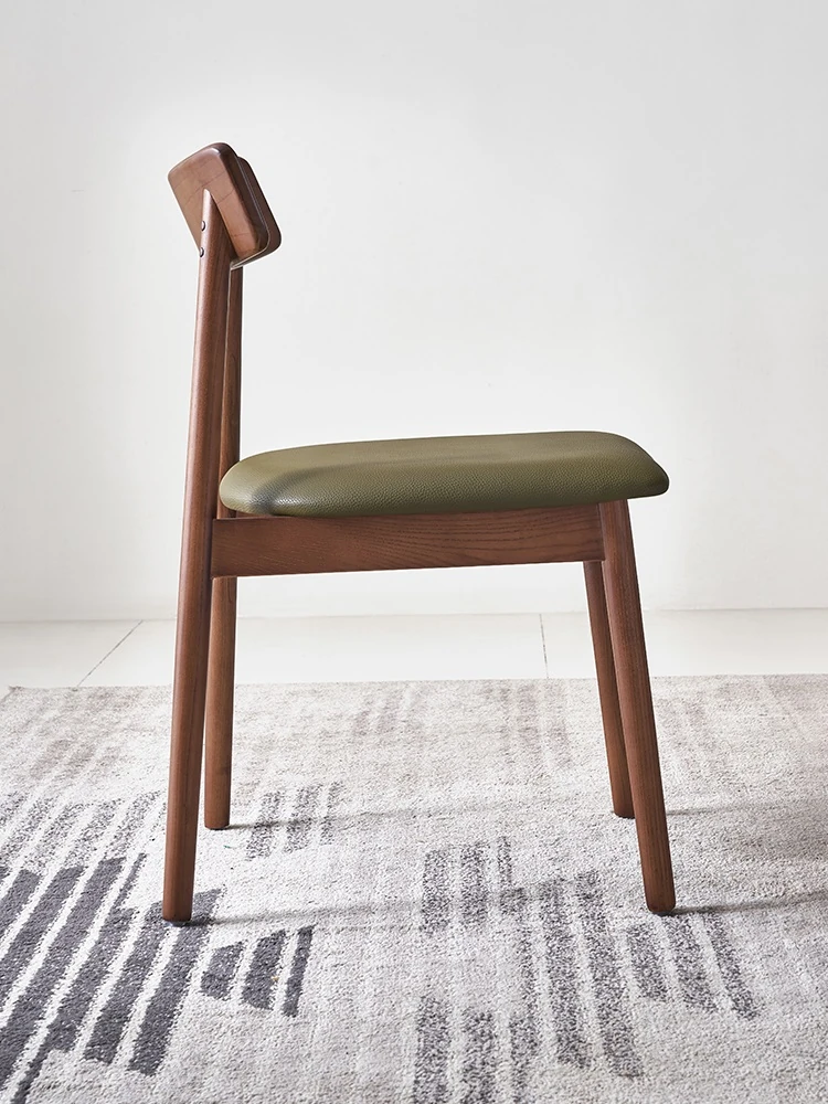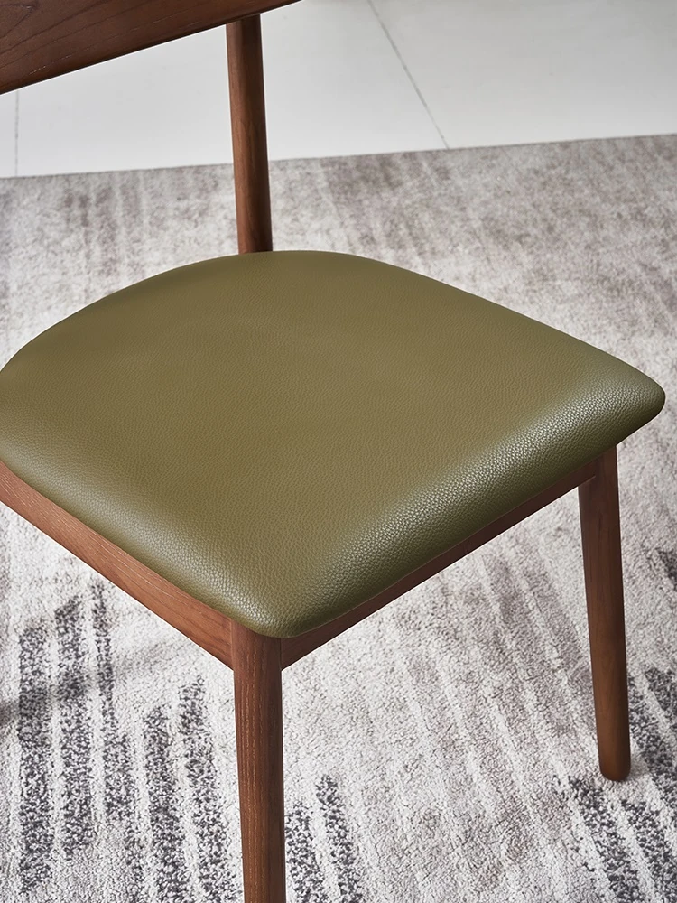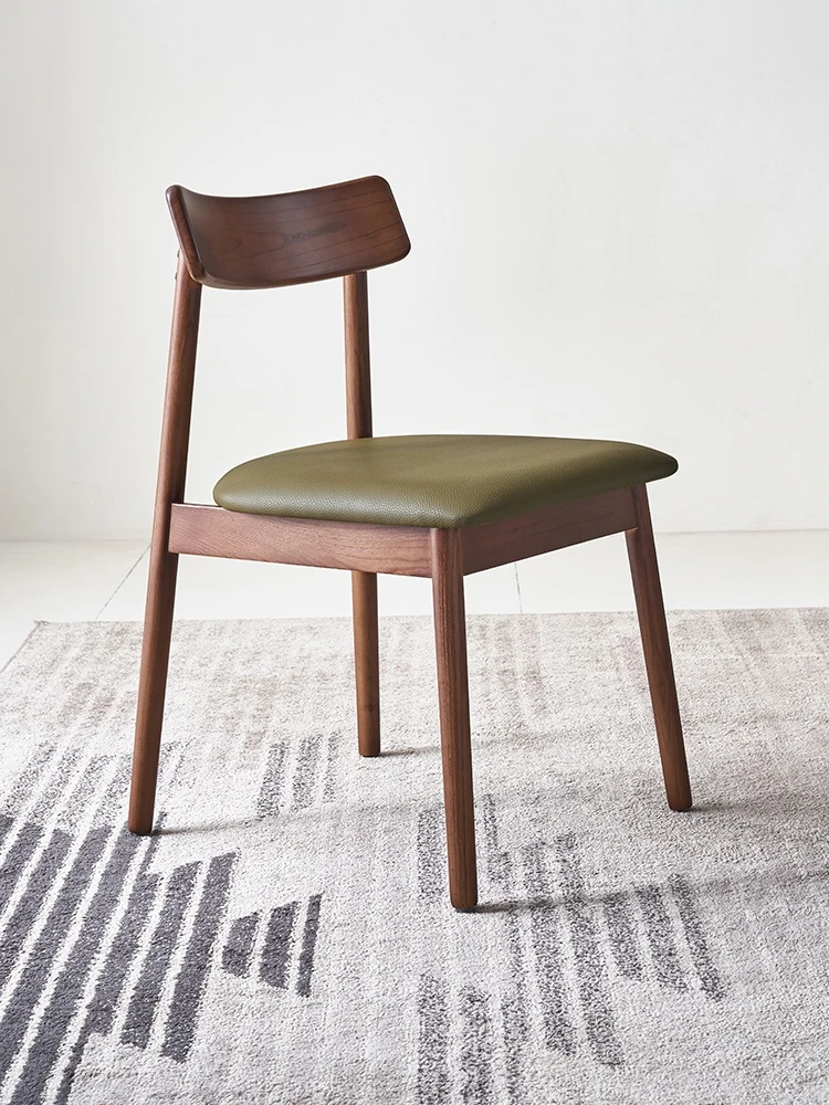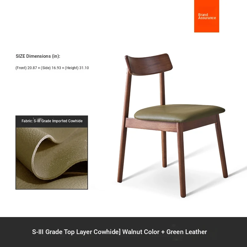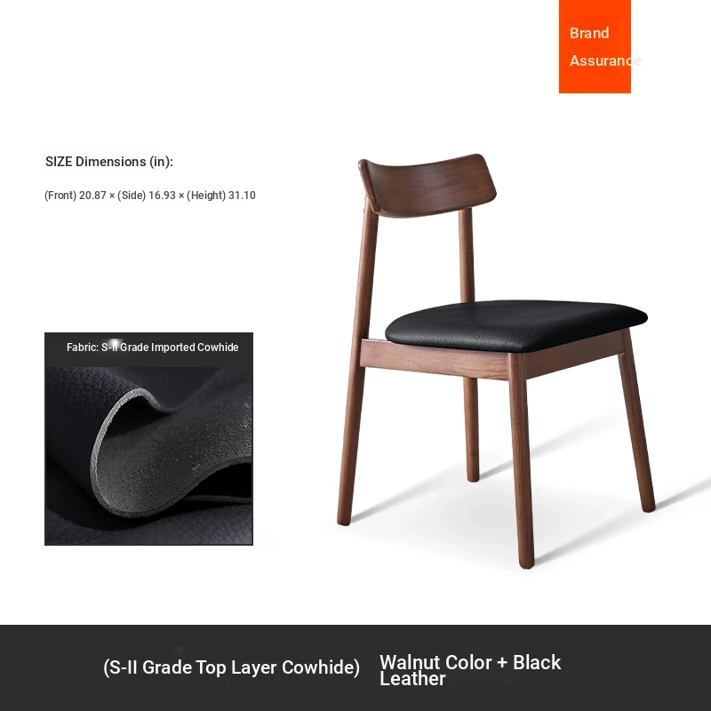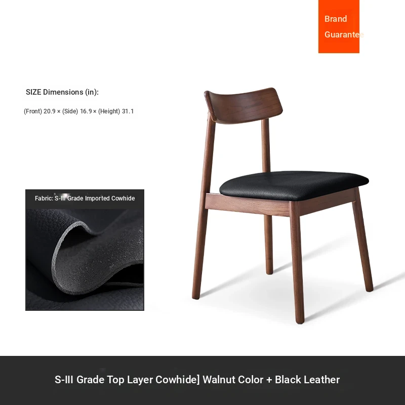 Moban Nordic Solid Wood Dining Chair in Walnut Color - Modern Minimalist Design, Italian-Style Genuine Leather Restaurant Chair