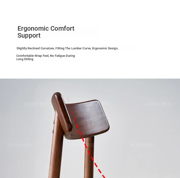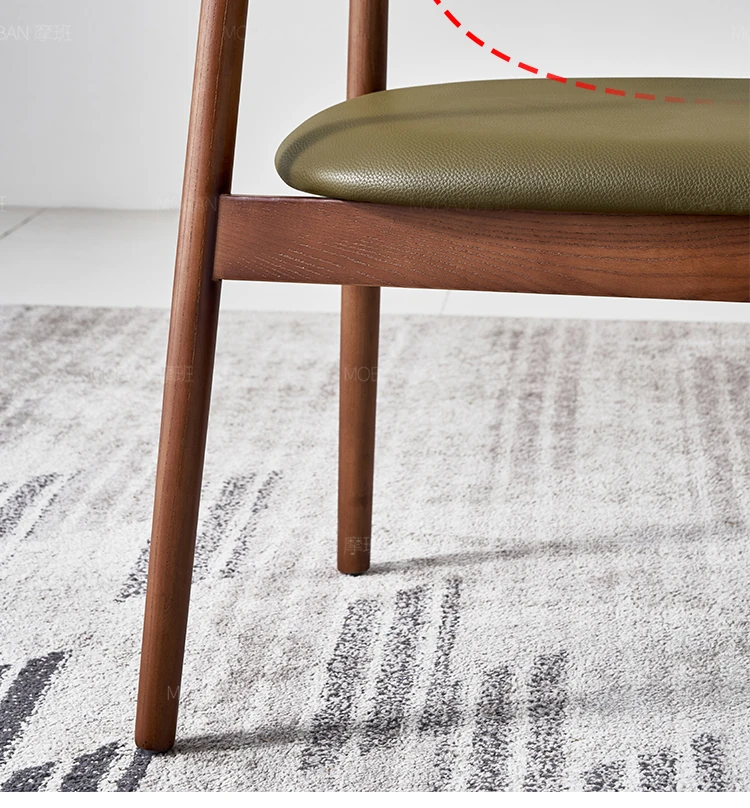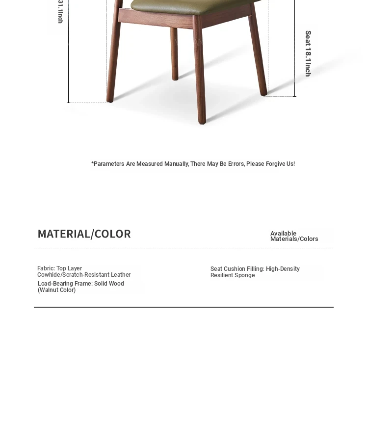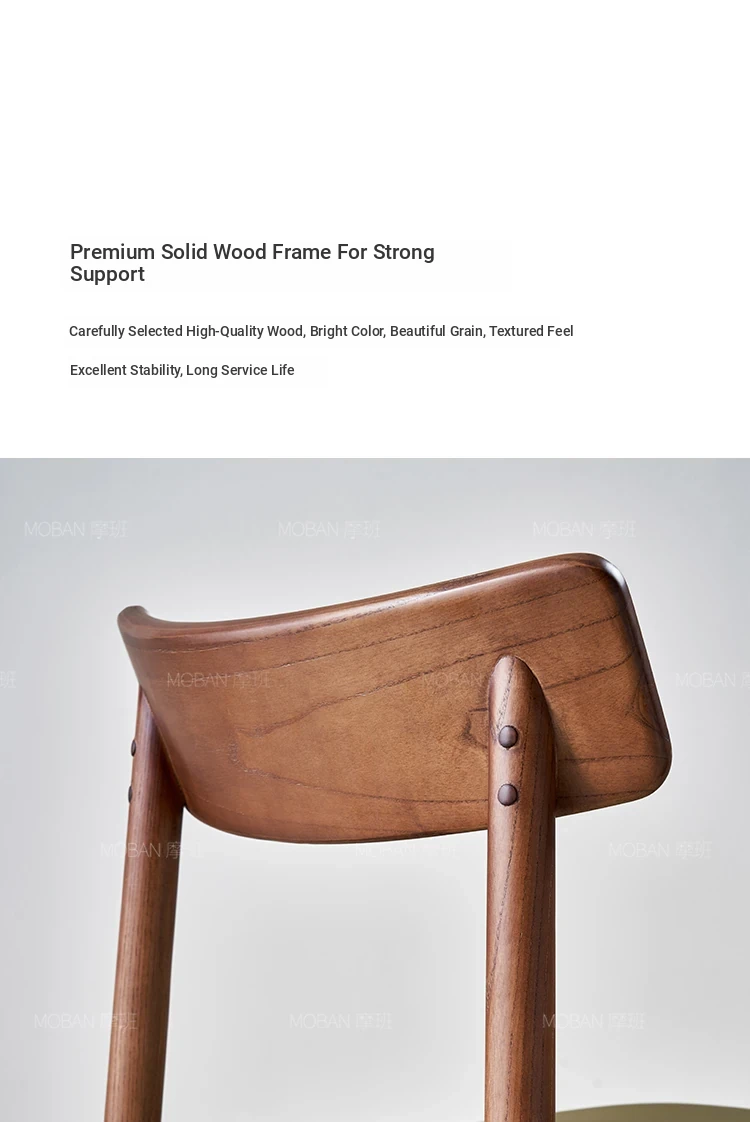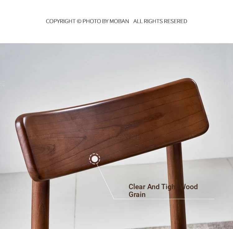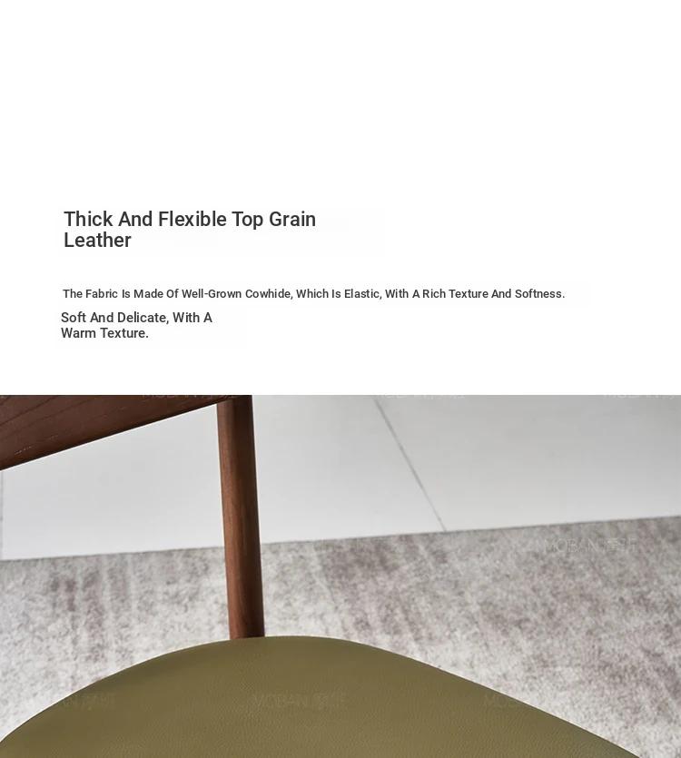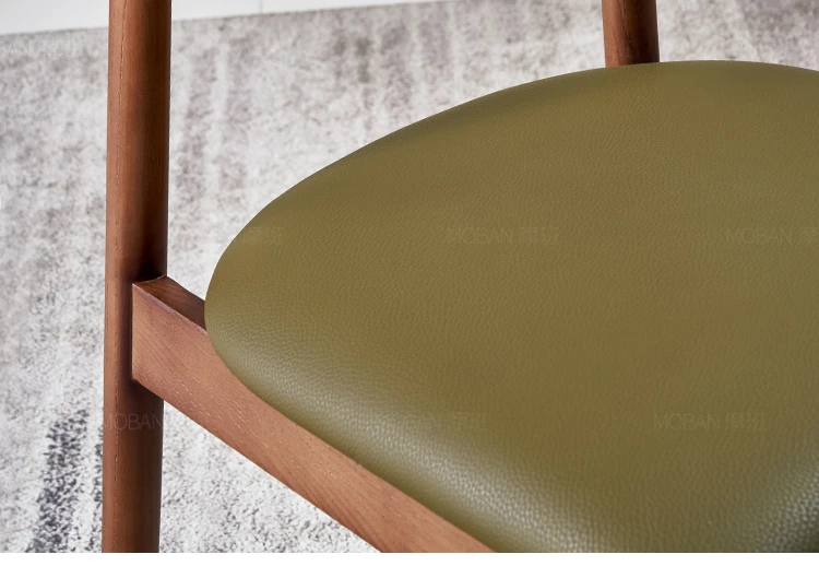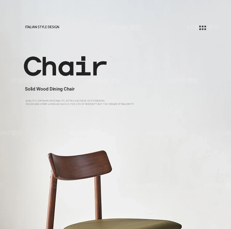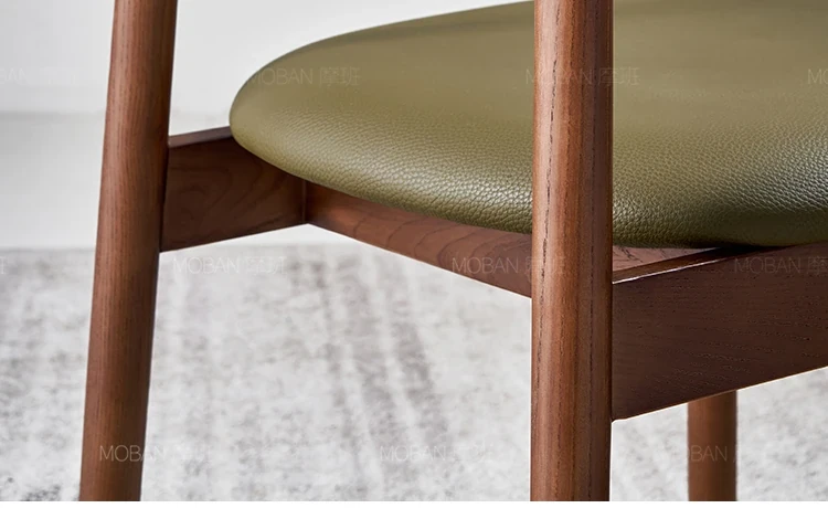 Moban Nordic Solid Wood Dining Chair in Walnut Color - Modern Minimalist Design, Italian-Style Genuine Leather Restaurant Chair