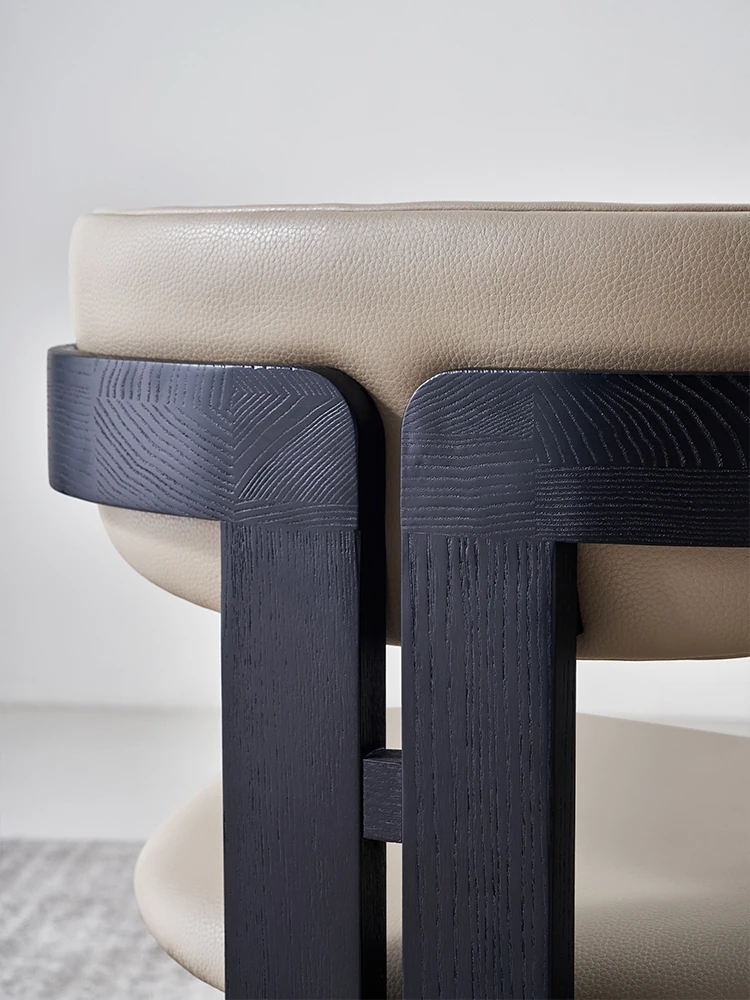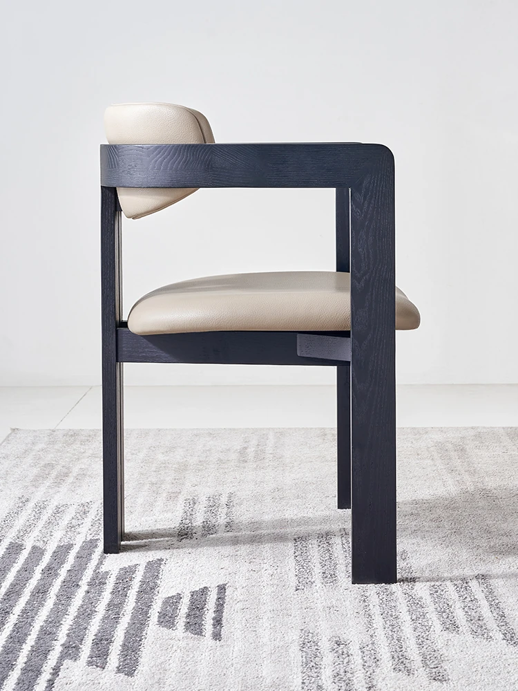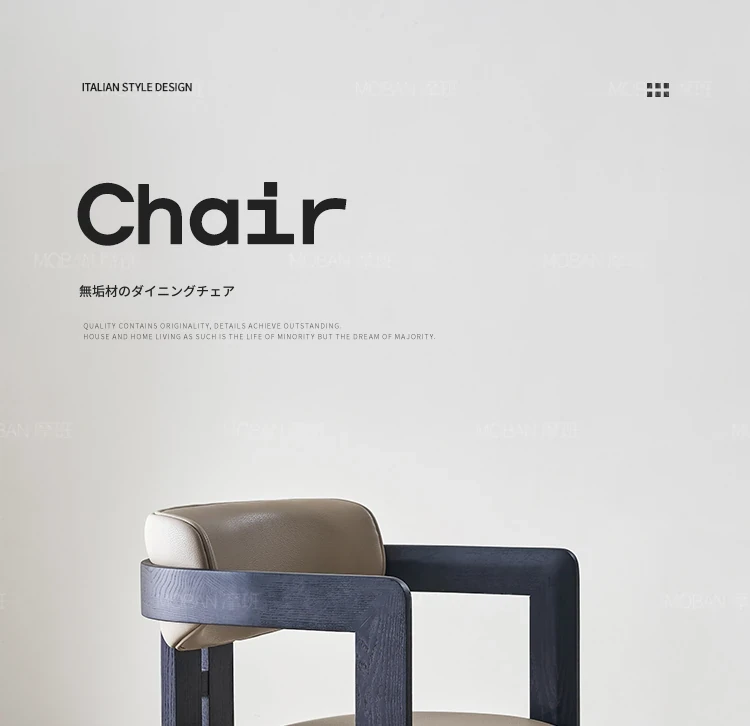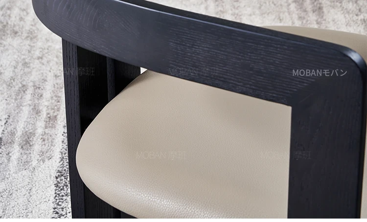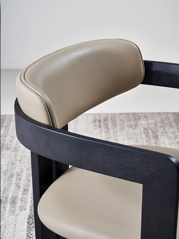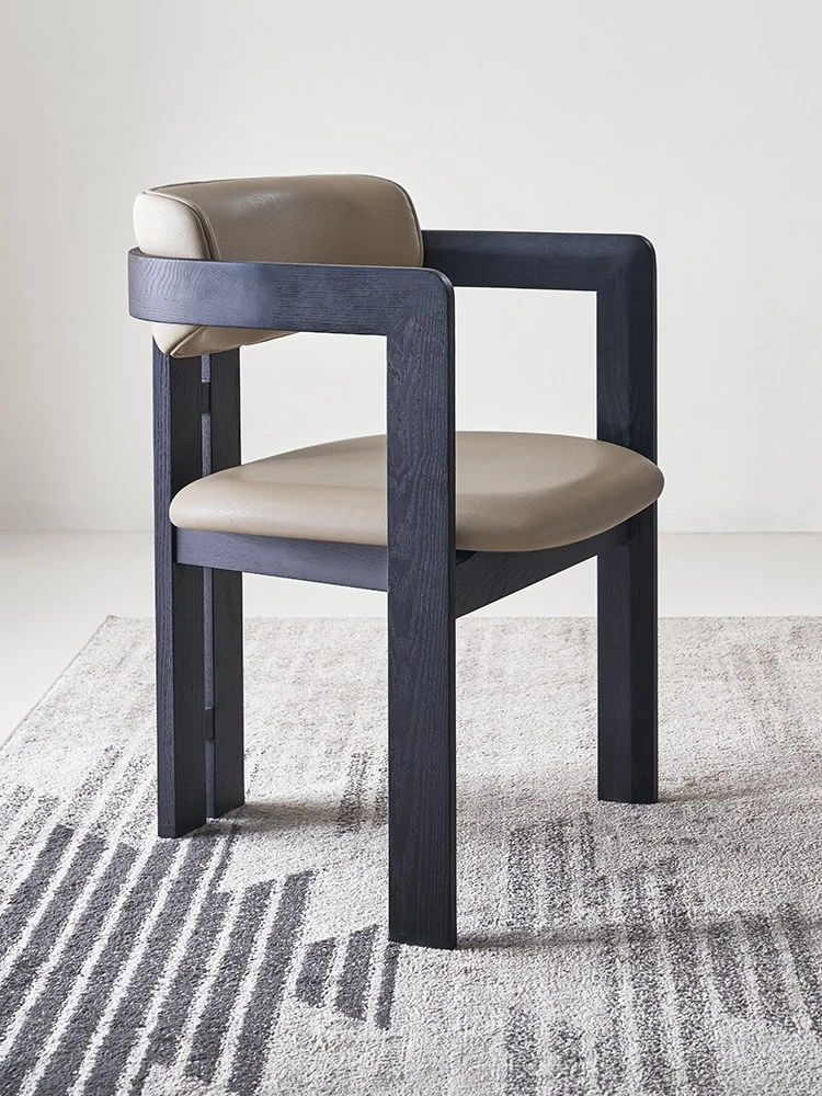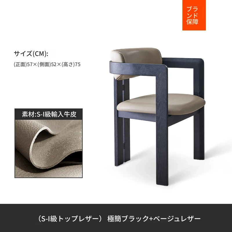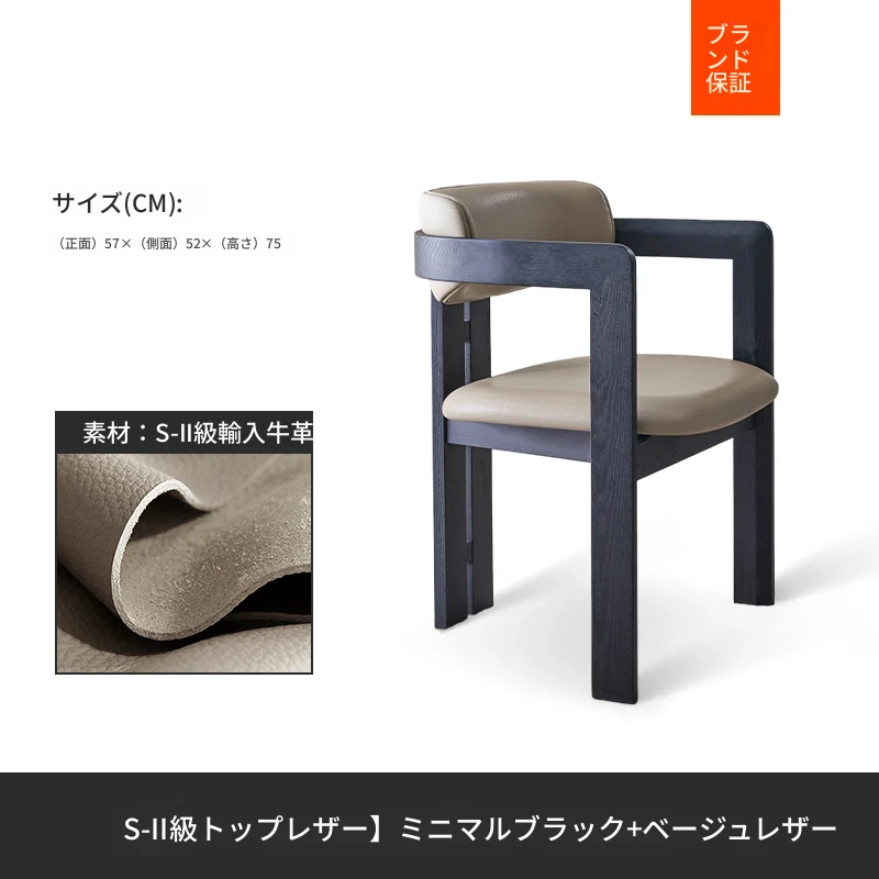 モバン レトロダイニングチェア イタリアンミニマリズム 無垢材 アームレスト 本革 高級感溢れる 高級ホテルやヴィラに最適なダイニングチェア