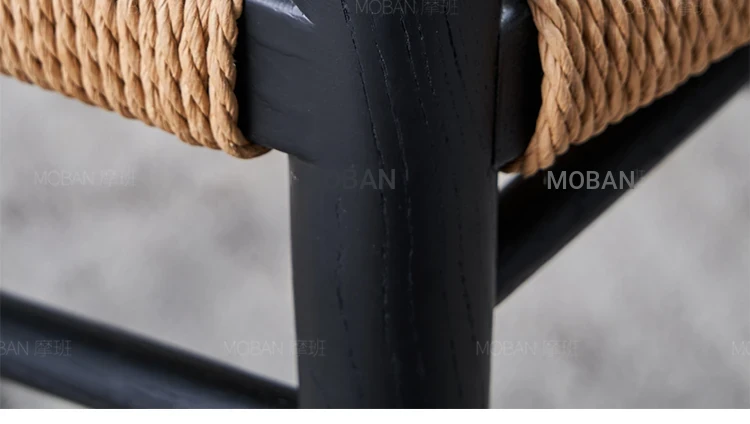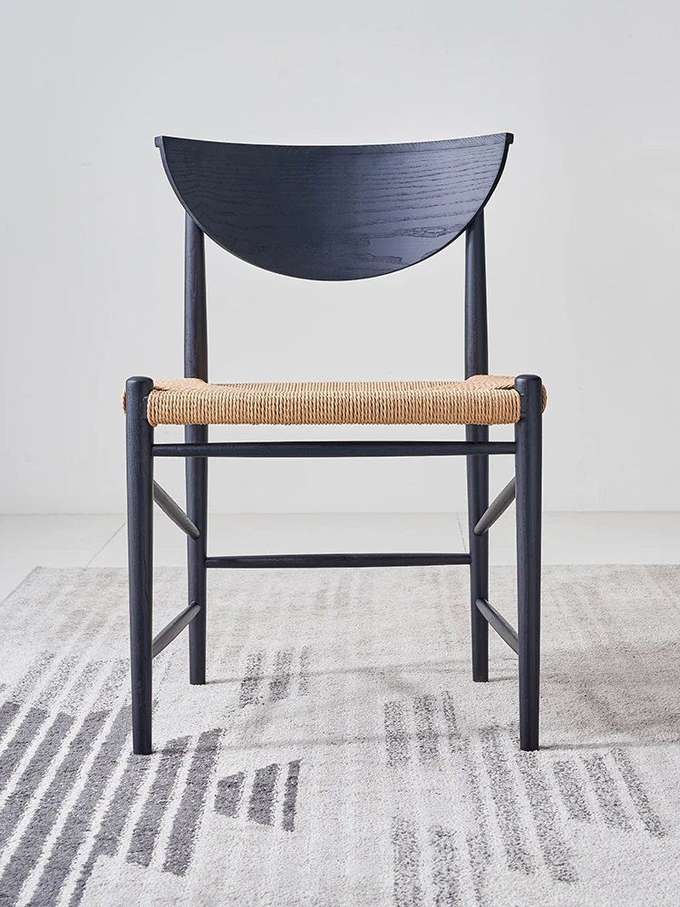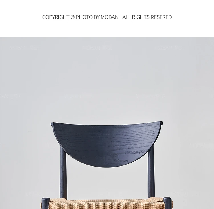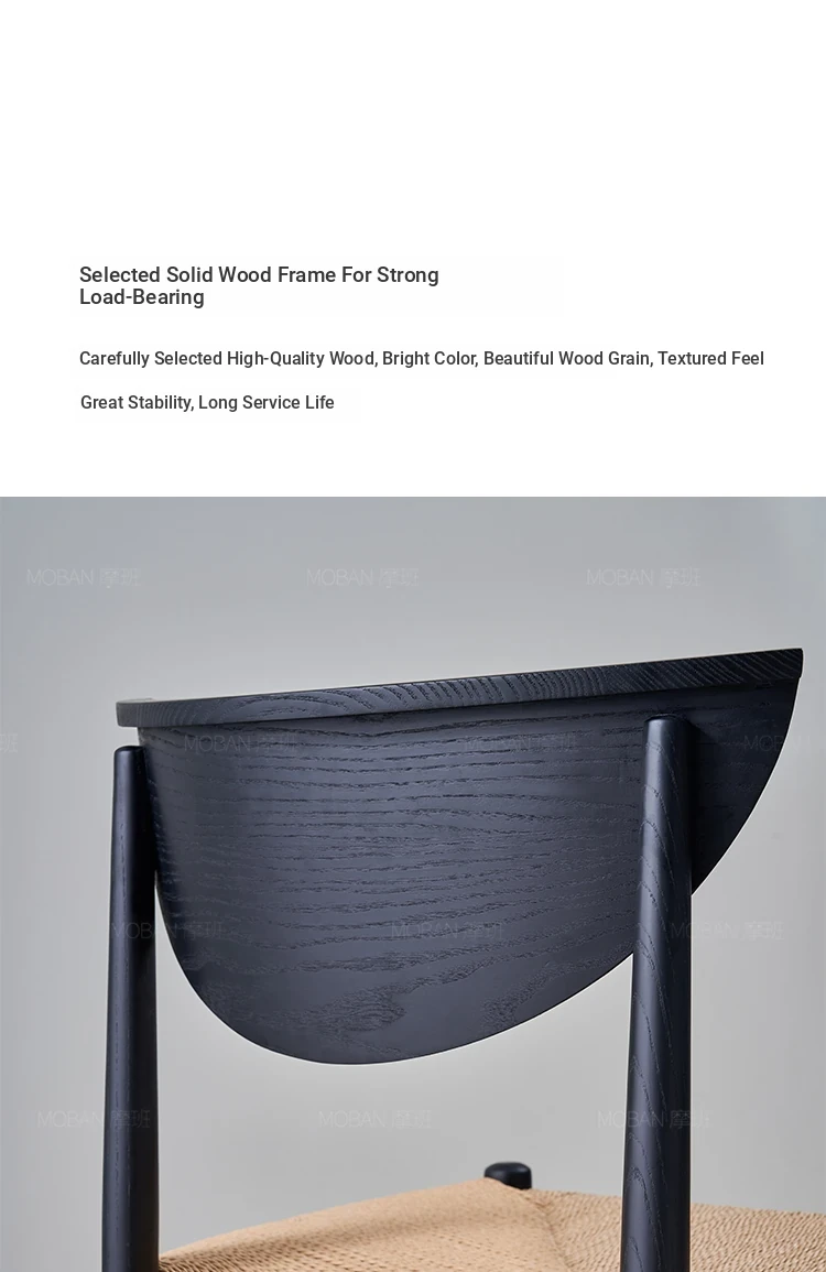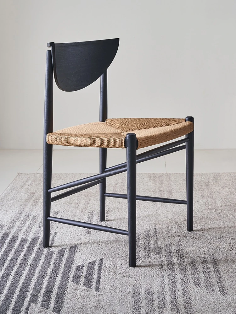 Moban Wabi-Sabi Style Dining Chair - Handwoven Rattan Rope Chair by Danish Designer, Nordic Vintage Solid Wood Backrest Chair for Elegant Dining Spaces